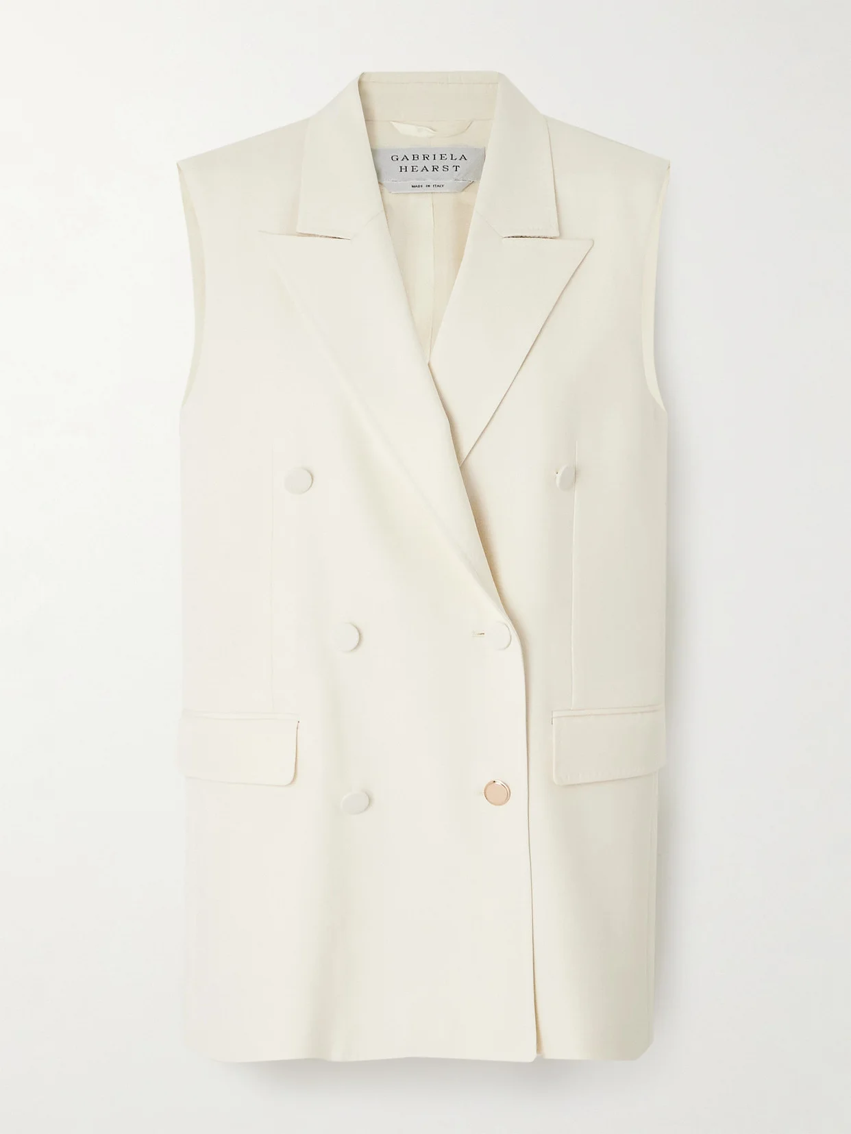 Gabriela Hearst's 'Mayte' vest looked so chic worn with the matching pants on the Spring '24 runway. Expertly tailored from a luxurious blend of silk and wool, it has a double-breasted profile with peak lapels, darting and flap pockets.