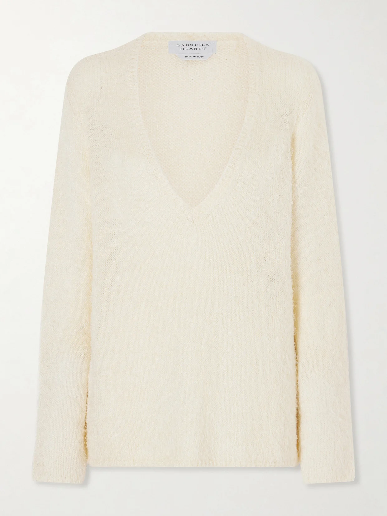 Gabriela Hearst elevates wardrobe staples through luxurious materials and precise tailoring. The ‘Neoma' V-neck sweater is knitted from a silk-cashmere blend in soft off-white and offers a gently relaxed fit, balancing comfort with a refined silhouette-perfect for pairing with tailored pants or jeans.