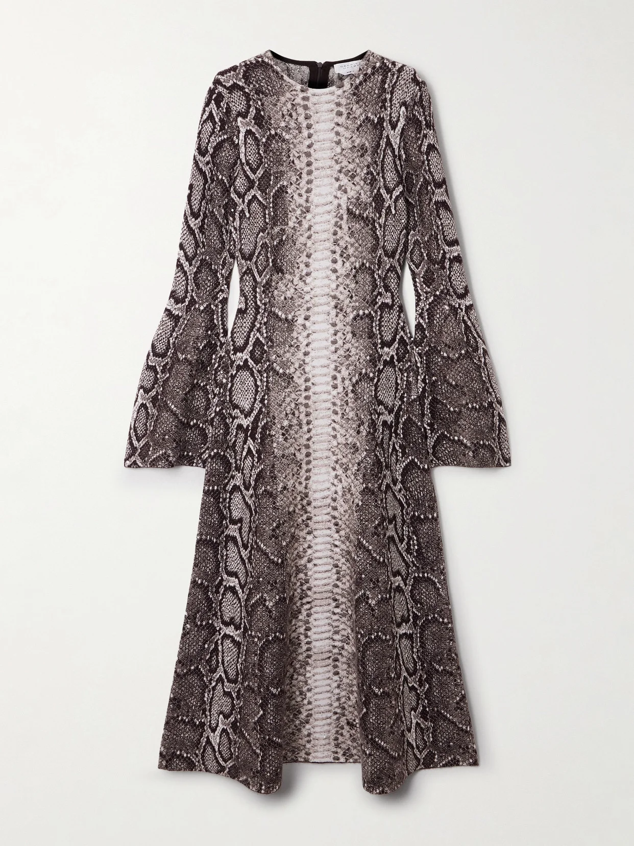 The serpentine references in Gabriela Hearst's Fall '25 collection are an homage to ancient Goddesses and their connections to the creature as a symbol of life. Debuted on the runway, this midi dress is jacquard-knitted from a cashmere and silk-blend that fluidly skims the figure. The flared sleeves will draw attention to a stack of rings.
