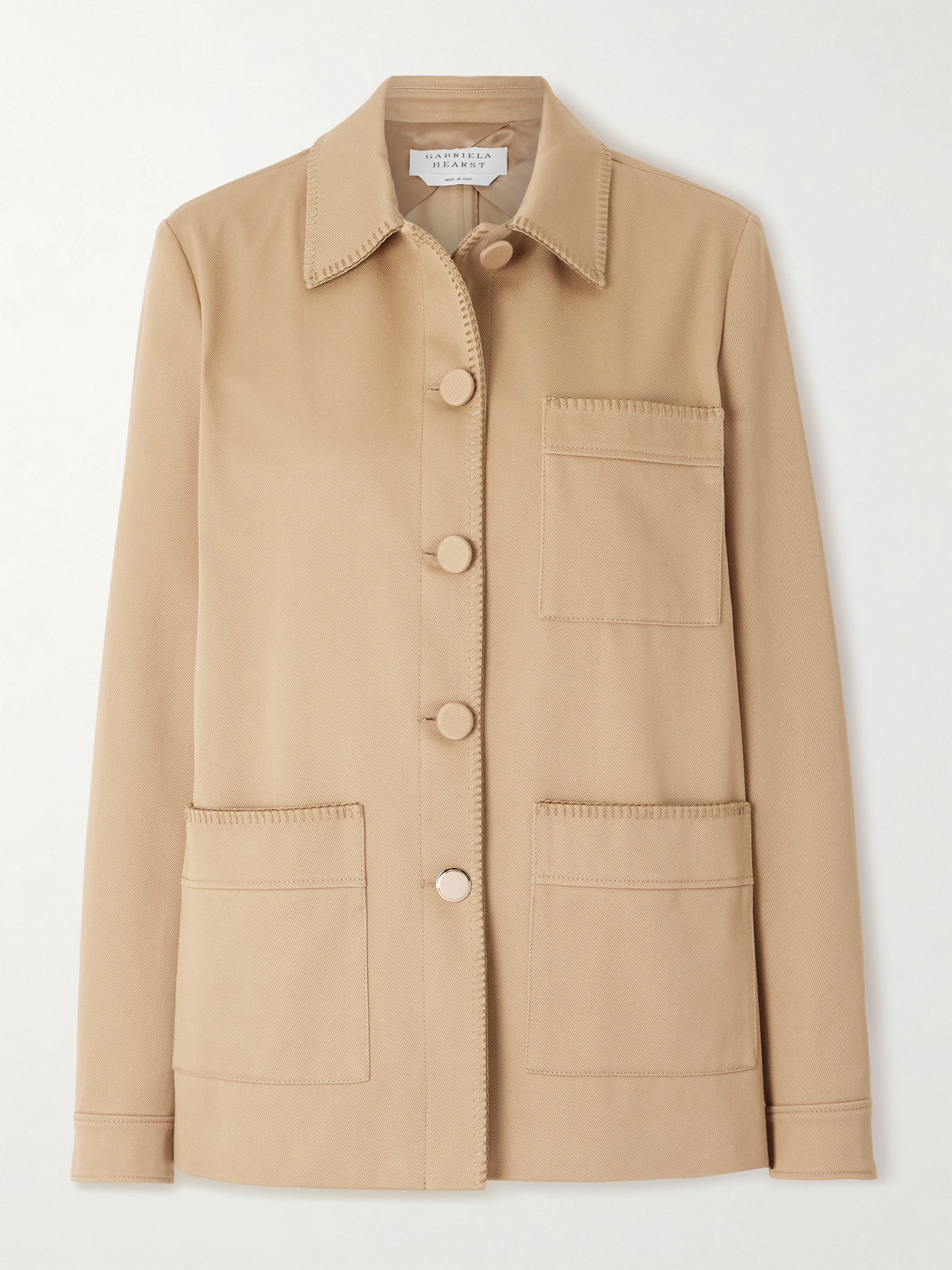 Gabriela Hearst's 'Ulu' jacket is made from rare Sea Island cotton-twill that's grown on local Barbados farms and irrigated solely with rainwater for a naturally soft handle. Inspired by classic chore styles, it's fitted with a trio of patch pockets and traced with blanket topstitching. The punctuative rose gold-tone button is a subtle brand signature.