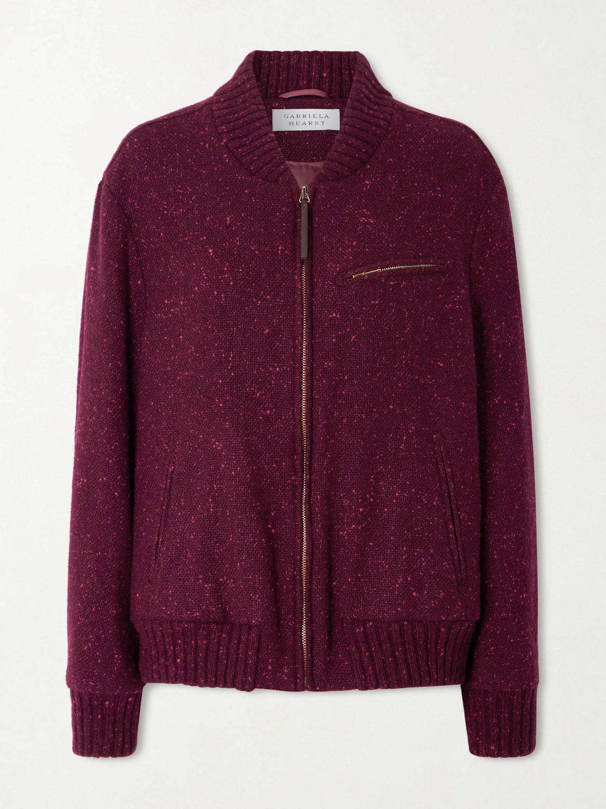 Gabriela Hearst's 'Winslow' bomber jacket draws on vintage menswear influences. It's made from speckled Donegal-effect cashmere that almost resembles tweed and has a relaxed silhouette with wide ribbed trims.