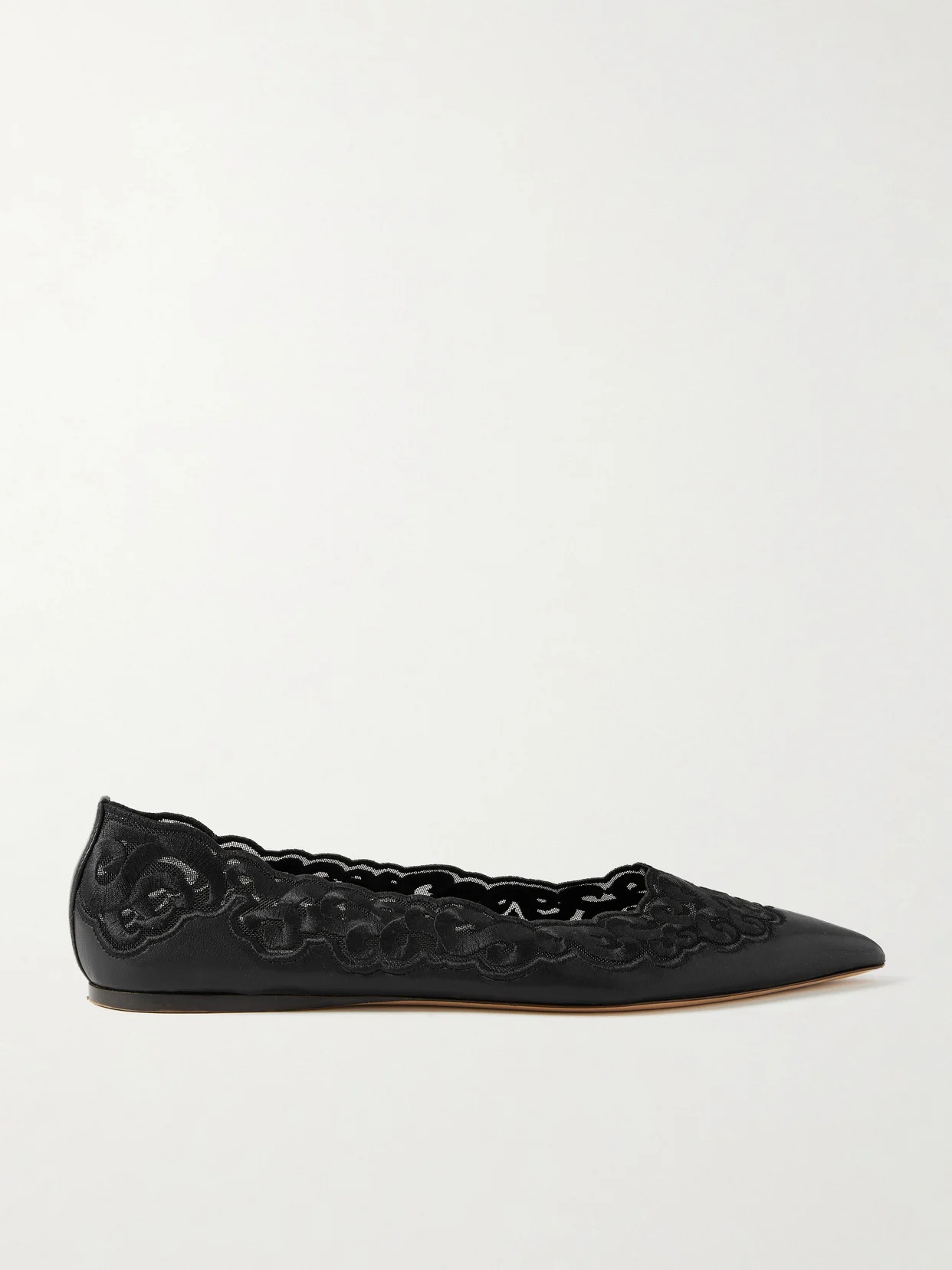 Ziva Leather And Embroidered Tulle Point-toe Flats