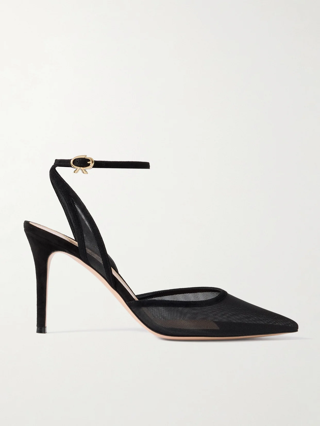 Gianvito Rossi believes that "luxury in shoes lies in the pleasure of slipping them on." Designed to make you feel empowered, these pumps have been crafted in Italy from sheer mesh, trimmed with suede and set on 85mm stiletto heels. The label's signature bow-shaped buckle details the strap.