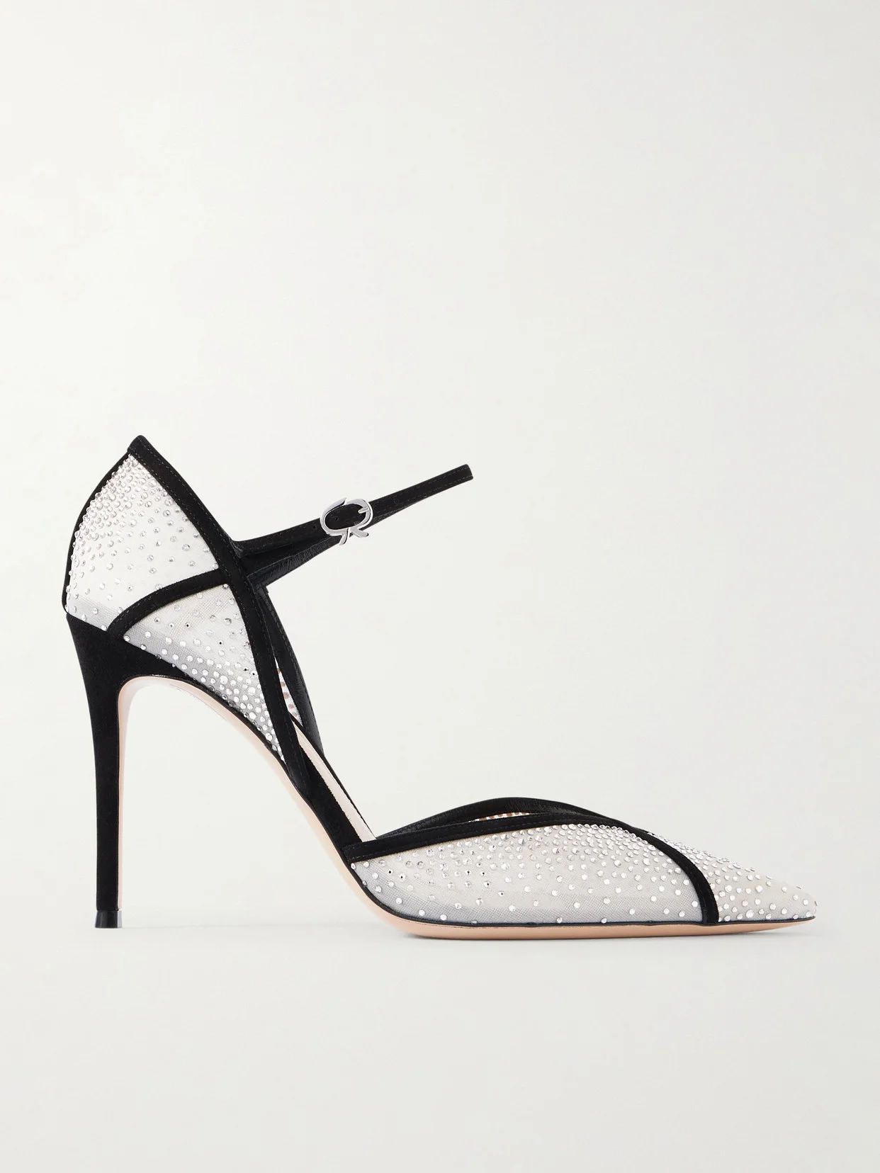 Gianvito Rossi's pumps are so glamorous. Resting on 95mm heels, they've been made in Italy from semi-sheer mesh and are embellished with sparkling crystals. The contrasting black suede trims outline the point-toe shape so prettily.