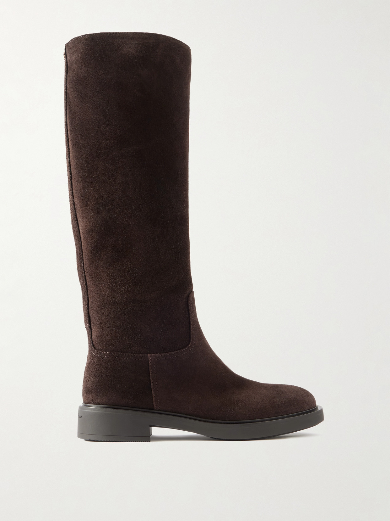 Gianvito Rossi's 'Ascott' knee boots have an equestrian look. Crafted in Italy from suede, they have round toes and rest on block heels that offer 20mm of comfortable lift. The label's 'Ribbon' logo hardware details the backs.
