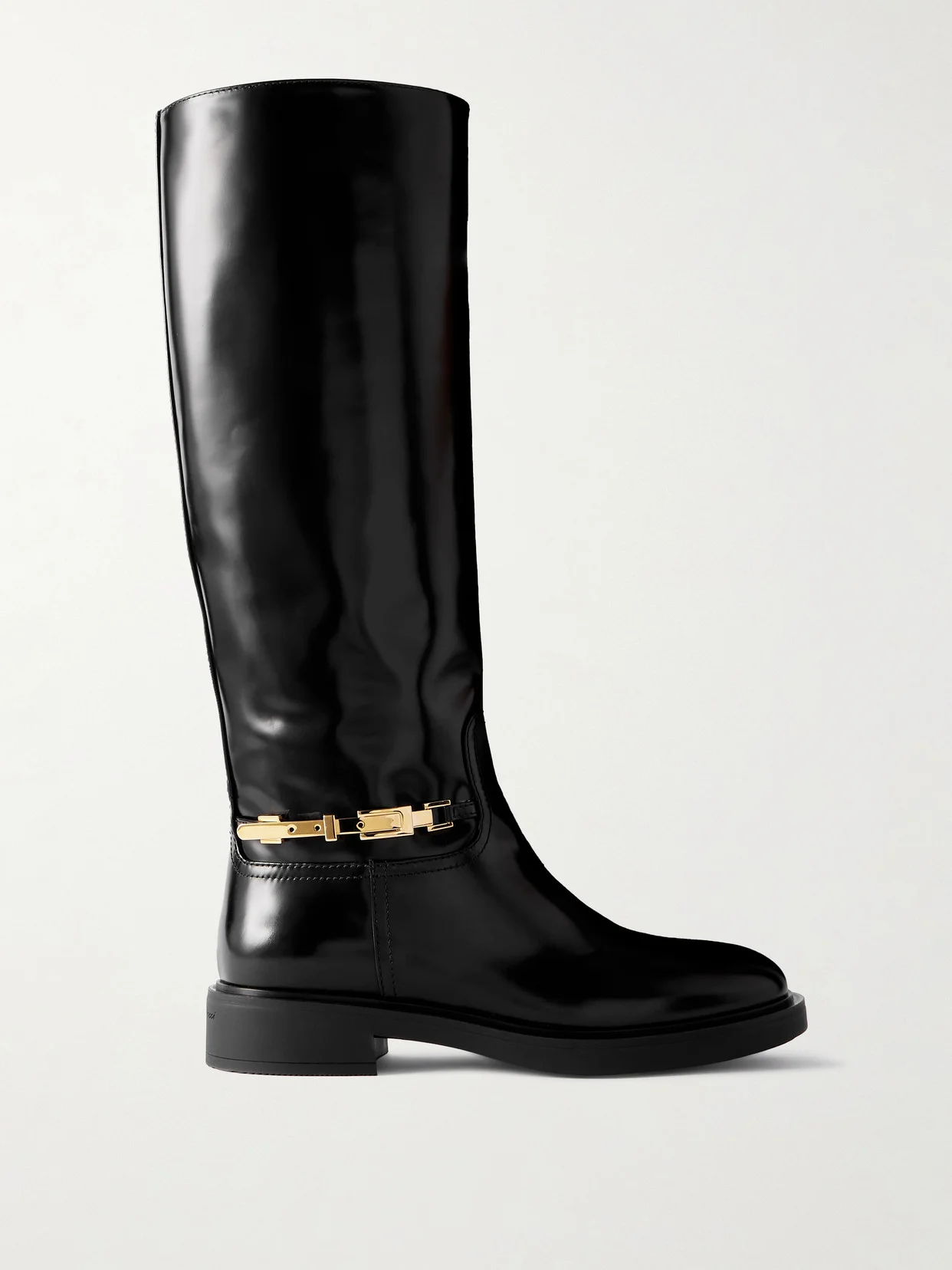Gianvito Rossi's boots exemplify fine Italian craftsmanship. Crafted from smooth leather with a glossy finish, they're set on rubber soles and accented with gold-tone buckle hardware. Be sure to polish them regularly to retain the shine.