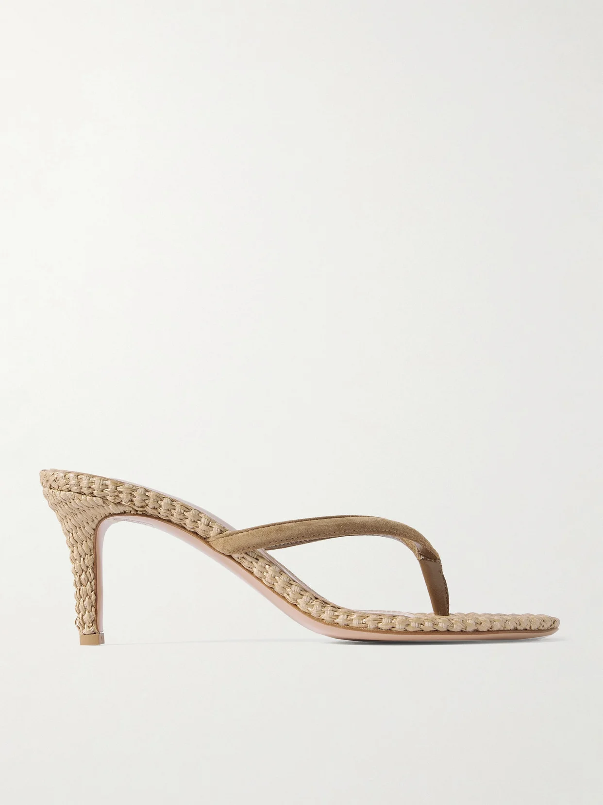 A summer essential, Gianvito Rossi's 'Calypso' sandals have been made in Italy from raffia offset by elegant suede straps and toe posts. They're set on 80mm heels, giving elevation to swishy skirts and floaty dresses.