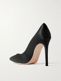You know a shoe is iconic when it goes by one name, and Gianvito Rossi's 'Gianvito' pumps are a timeless example. Made in Italy from satin, they have pointed toes, lightly cushioned insoles and sleek 105mm stiletto heels. Wear them with everything from dresses to tailoring. Size & Fit - Fits true to size, take your normal size - Those with wide feet may wish to take the next size up - Narrow at the toe - Italian sizing Details & Care - Heel measures approximately 105mm/ 4 inches - Black satin - Slip on