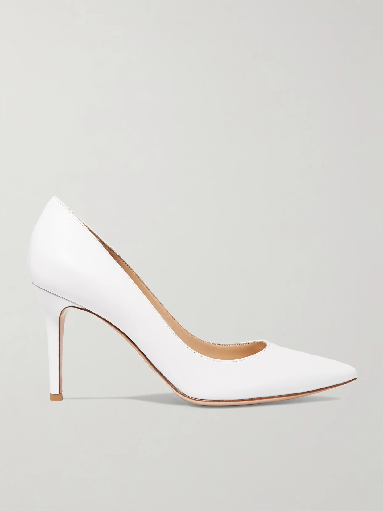 At once eye-catching and totally versatile, white pumps deserve a place in every wardrobe. Gianvito Rossi's version is made from smooth leather and has a pointed toe to mirror the svelte stiletto. Wear yours with tailoring or deconstructed dresses.