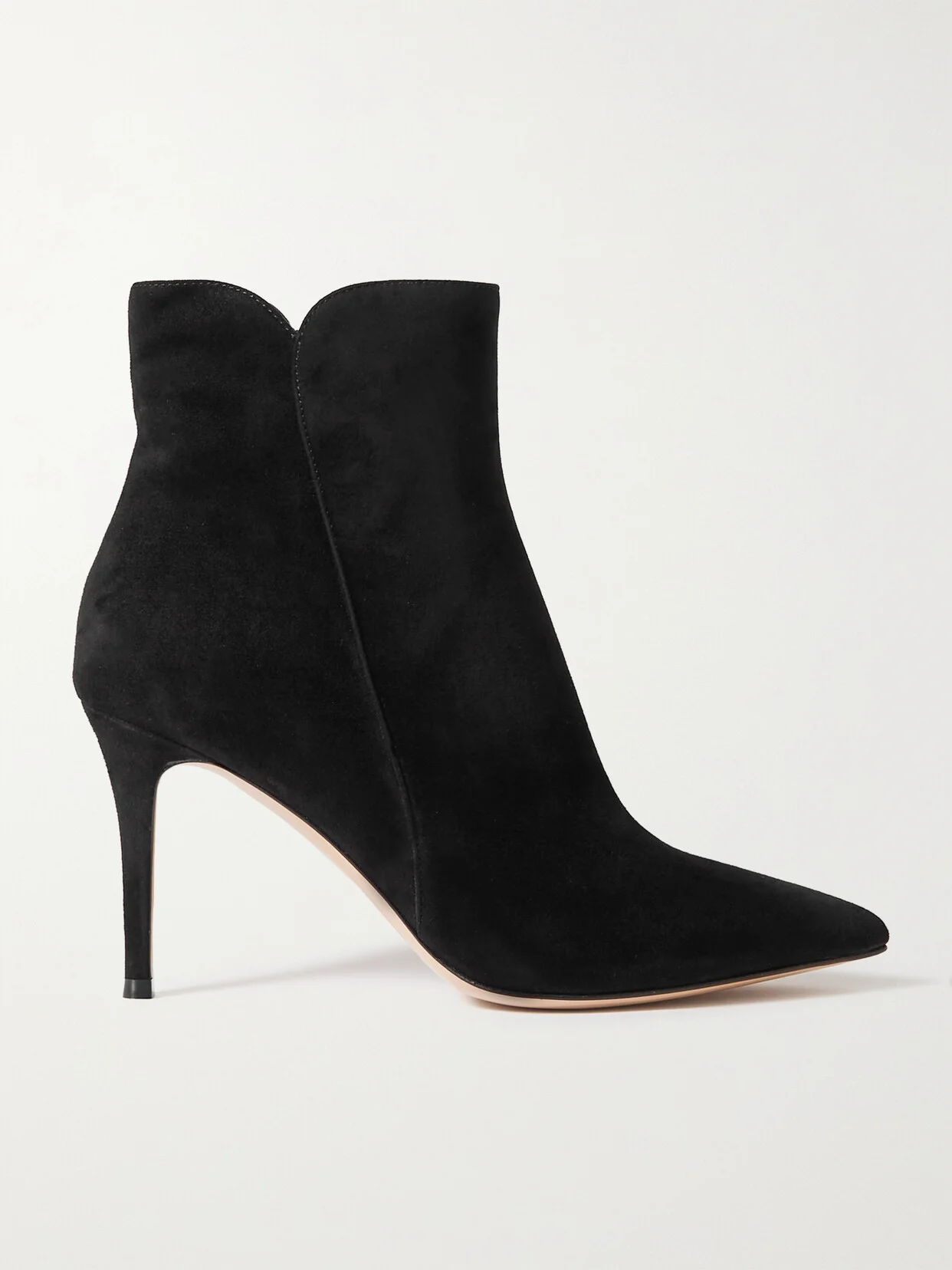 Gianvito Rossi's 'Levy' ankle boots are so chic and versatile - it's no wonder Rosie Huntington-Whiteley and Alessandra Ambrosio keep them on rotation. Set on 85mm heels, this pair has been crafted in Italy from soft black suede and has pointed toes and curved cuffs. Wear them with anything from cropped jeans to midi skirts.