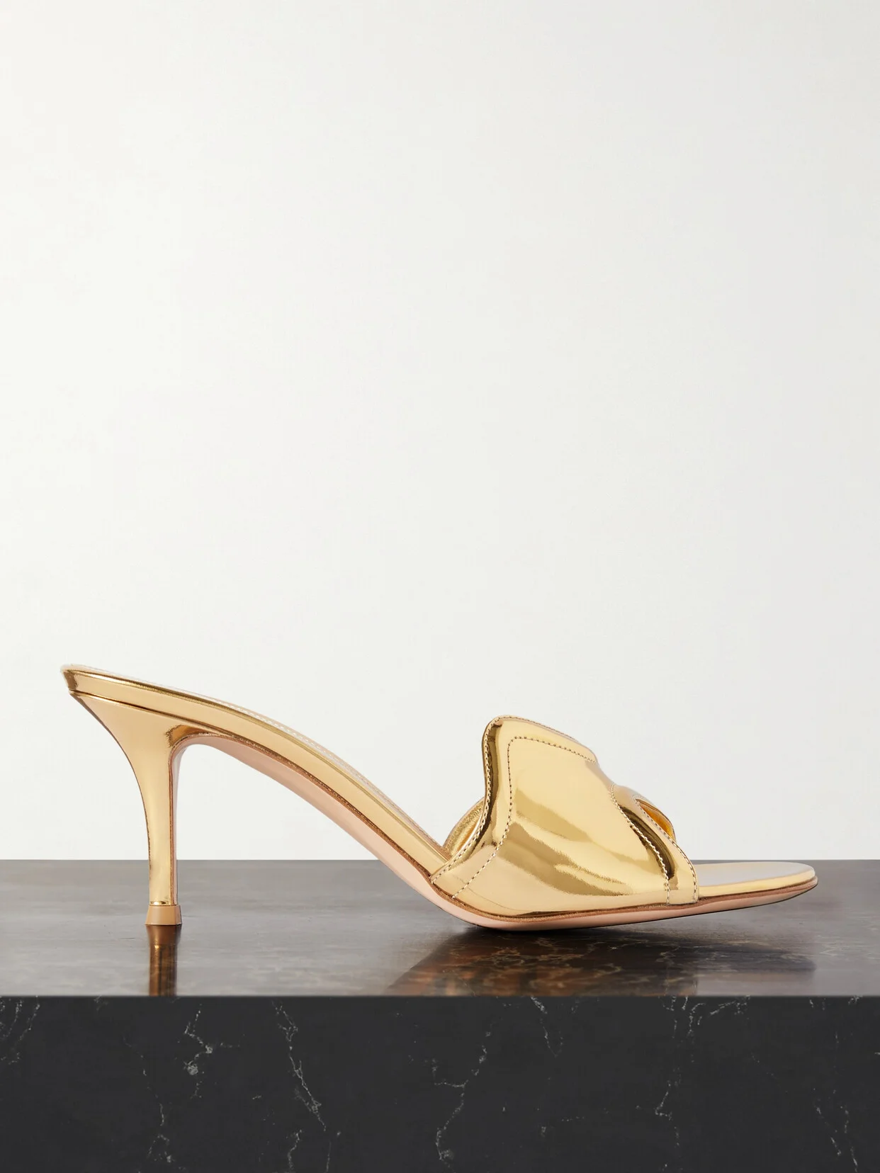 Pared-back can still make an impact, as Gianvito Rossi's 'Lucrezia' mules prove. They're crafted from gold mirrored-leather with sculptural, wavy straps that add to the illusion of molten metal. There's no doubt they'll be the highlight of your outfit.