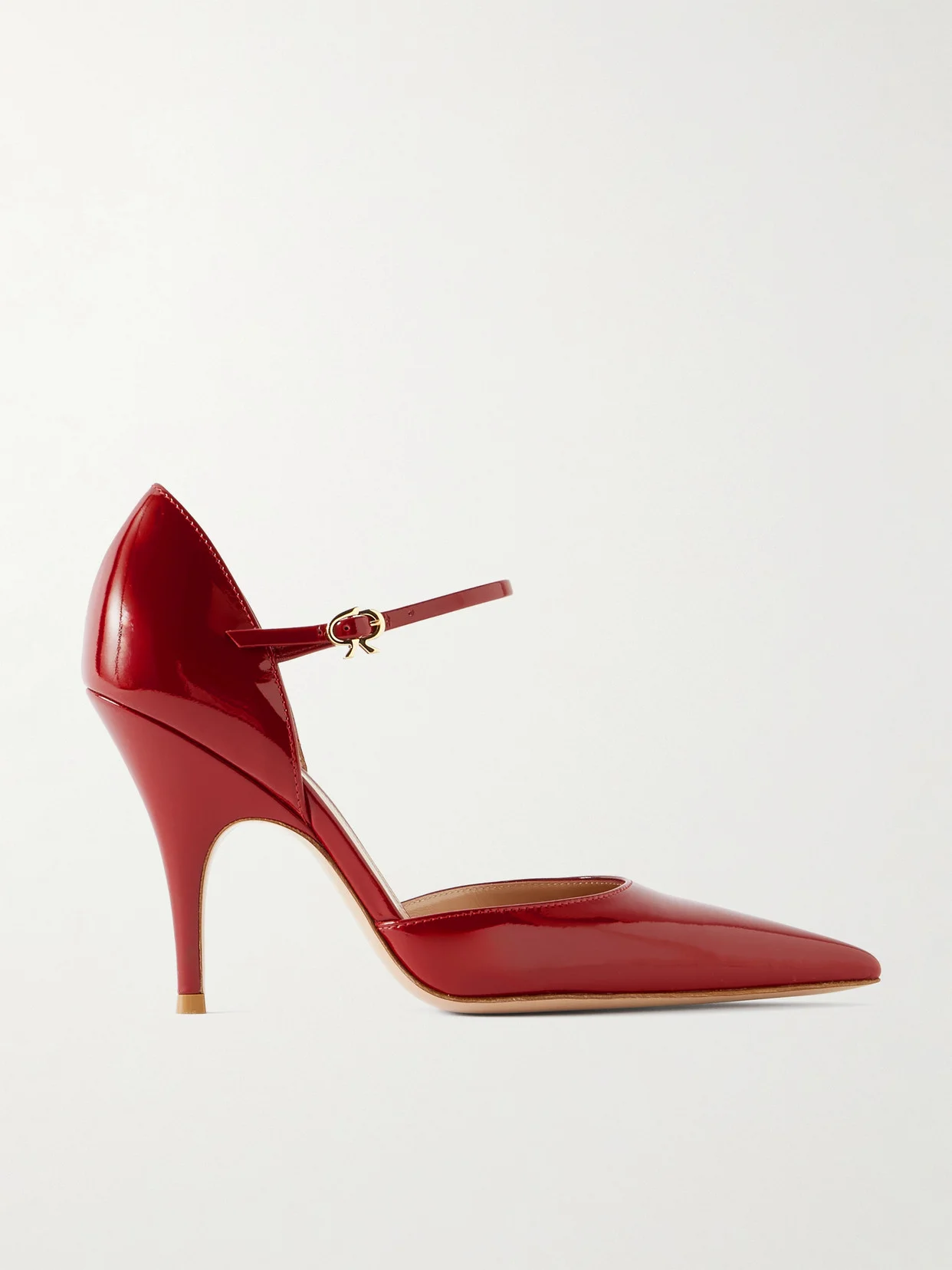 All of Gianvito Rossi's beautiful shoes are handcrafted in Italy. These 'Nuit' pumps are made from glossy patent-leather with slender ankle straps and pointed toes. They're set on 95mm heels that are curved at the base for comfort.