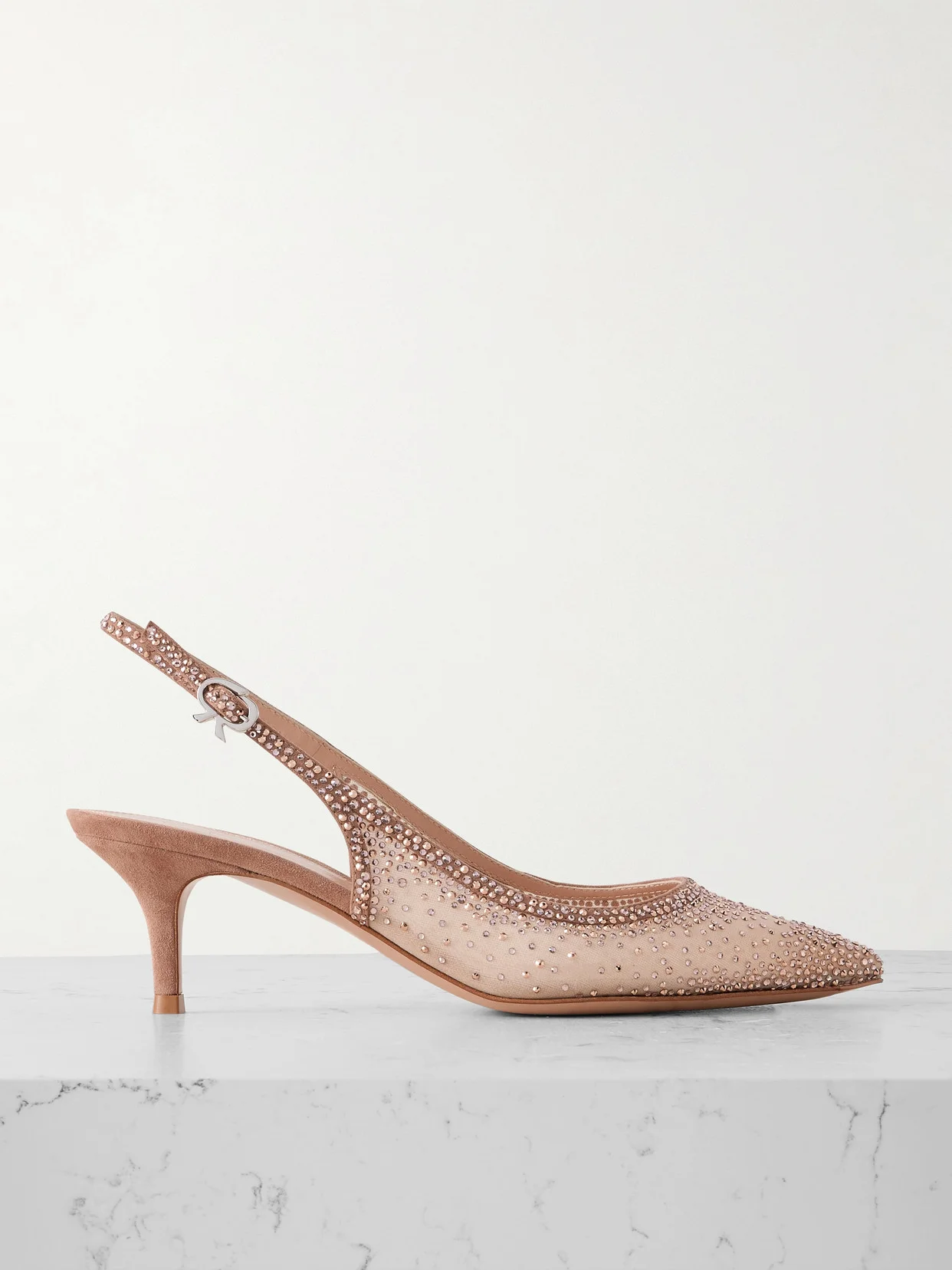 Gianvito Rossi's 'Regina' pumps have been made in Italy from organza using time-honored techniques passed down through generations. They're covered with light-catching crystals and reinforced with blush suede. The 55mm heels offer comfortable lift.