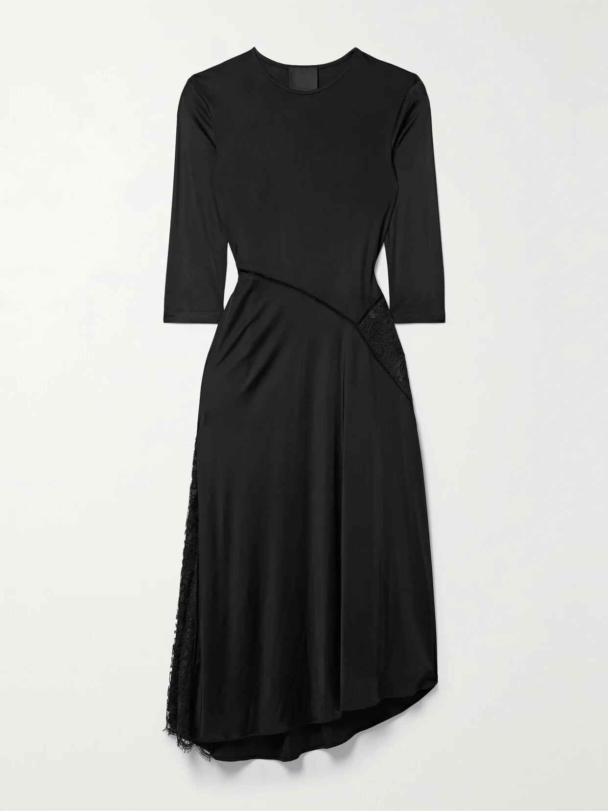 Asymmetric Lace-paneled Jersey Midi Dress