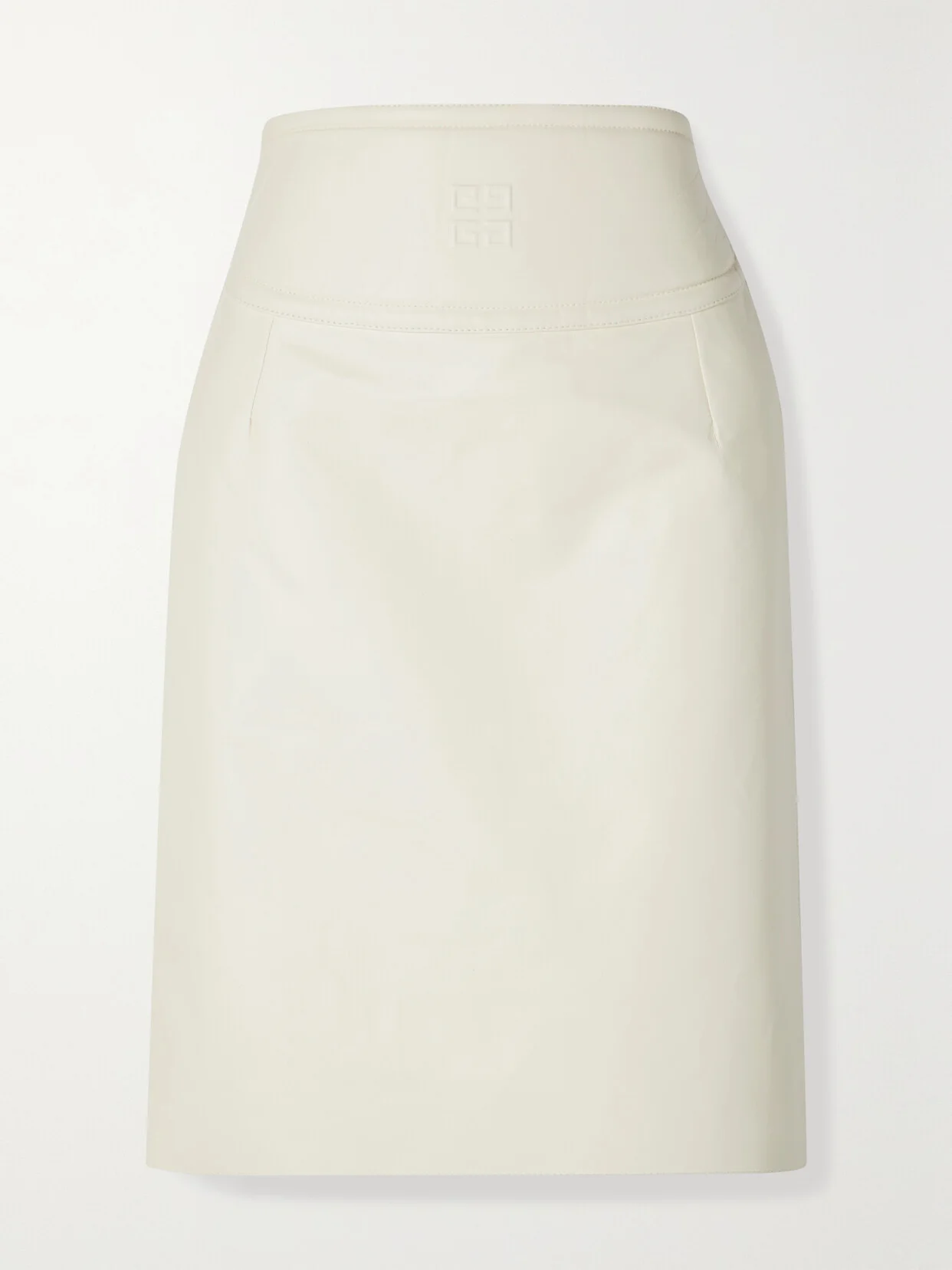 Crafted in Italy from smooth off-white leather, Givenchy's skirt has a high-rise waistband embossed with the brand's '4G' logo. It's designed for a slim fit but has a slit hem so you can move easily. Style yours with stilettos and a tonal bodysuit so the cutout back looks neat.