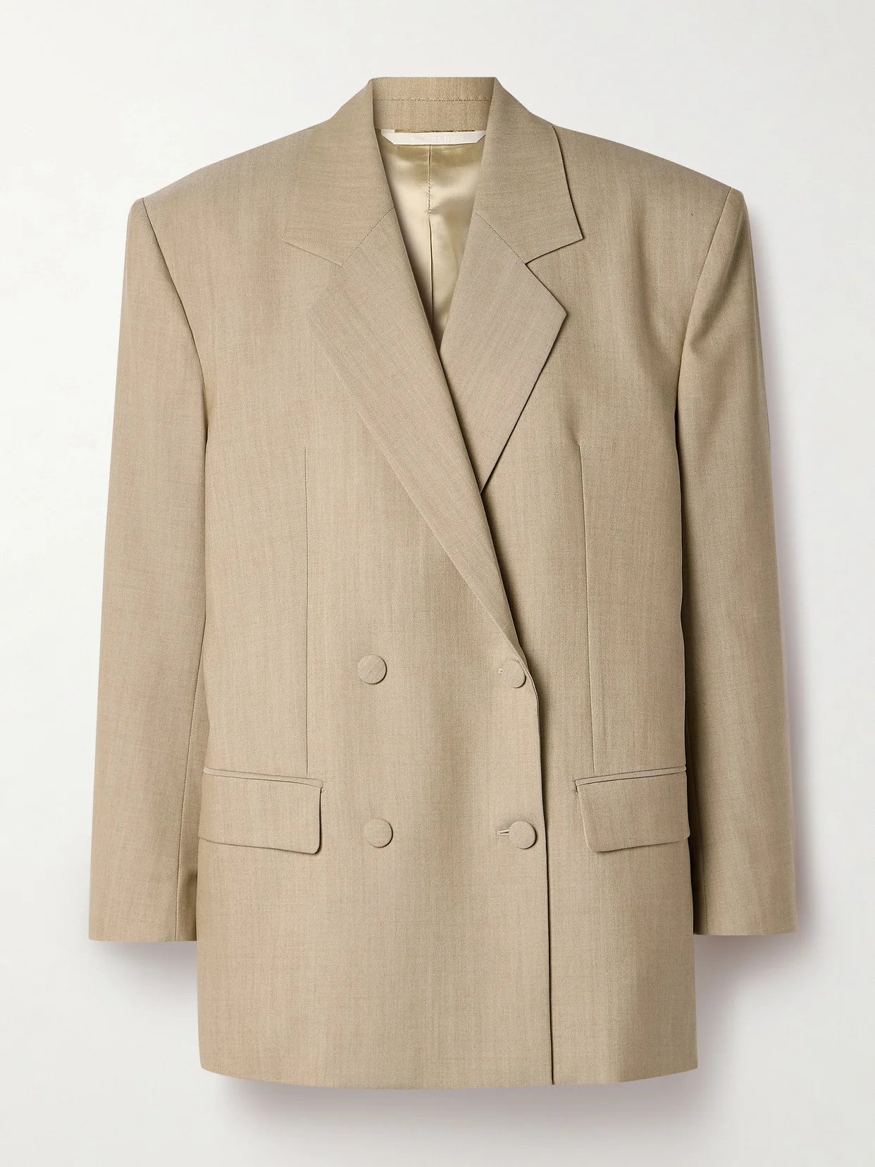Givenchy's Spring '24 collection is filled with easy, elegant styles you'll wear for years to come. Tailored from wool, this understated blazer has dramatic padded shoulders and a classic double-breasted profile. The oversized, boxy fit and satin lining ensure smooth layering.