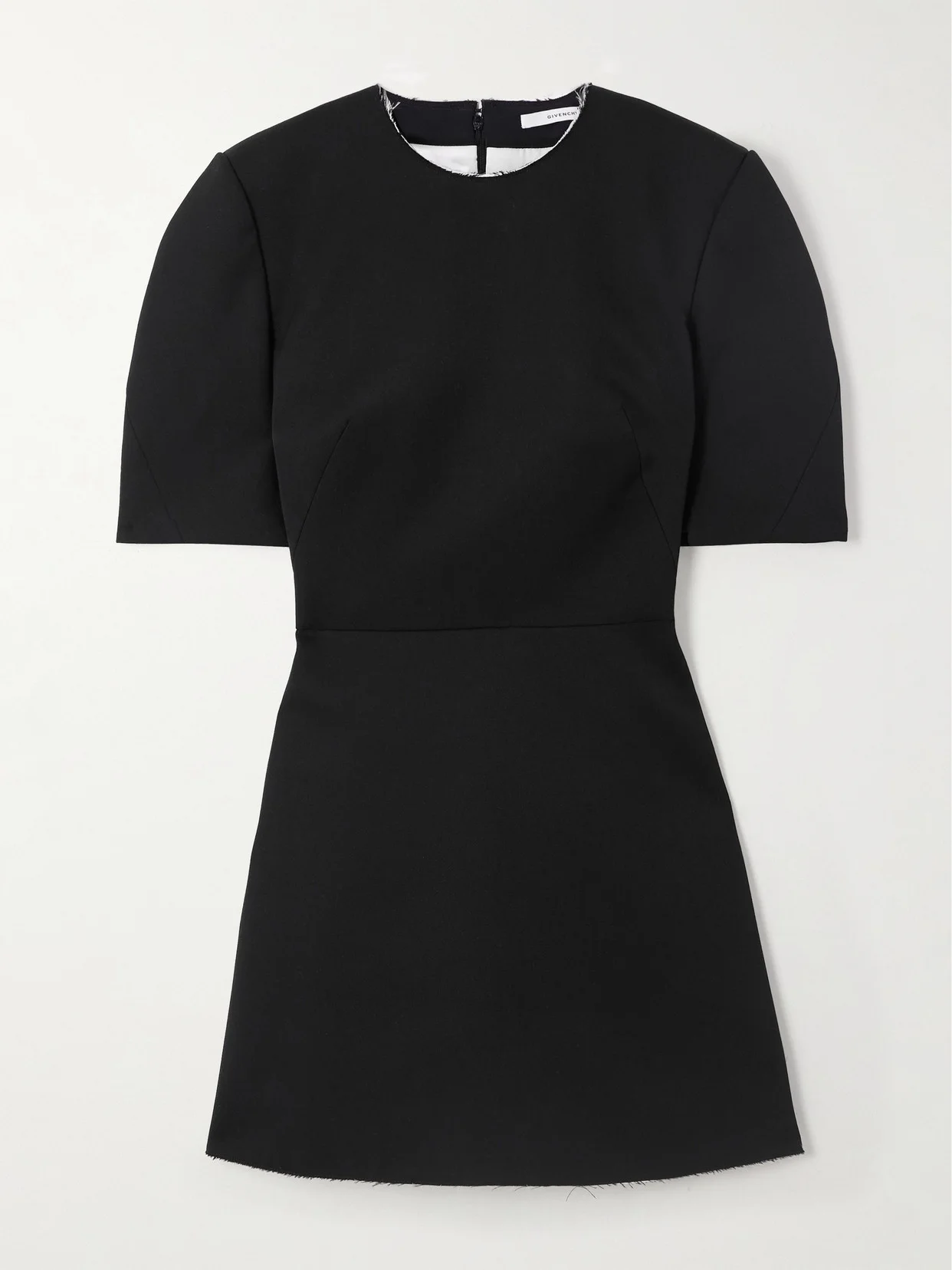 Givenchy uses couturier techniques to achieve the exaggerated cocoon shape and cinched waist on this mini dress. It's cut from grain de poudre wool and finished with intentionally raw edges. Wear yours with point-toe pumps.