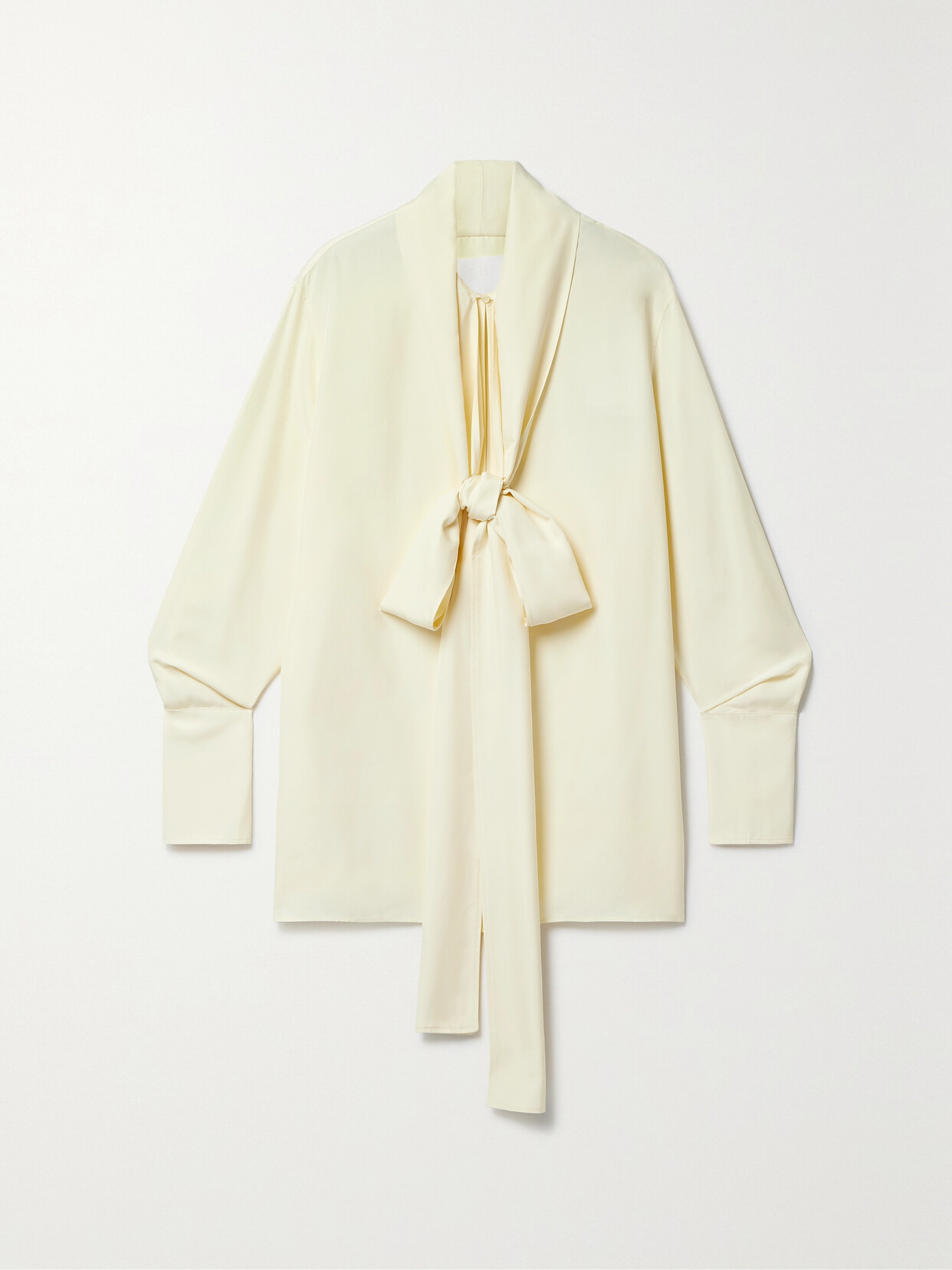 Givenchy's blouse is designed with elegant pussy-bow ties that can be left undone so they drape to the ankles. Cut from pure silk, it has a loose shape and subtle blouson sleeves. Our stylists like it with equally languid tailored pants.