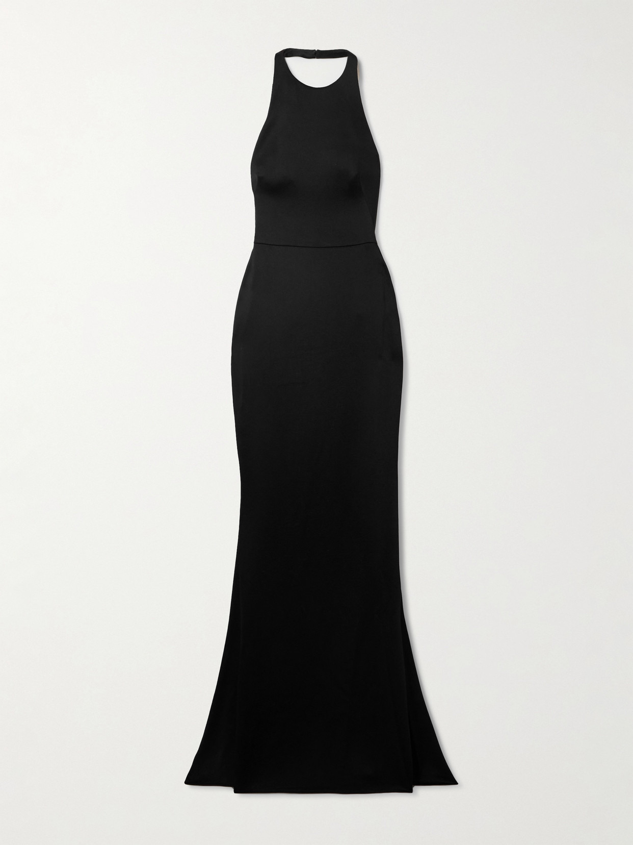 Striking and elegant gowns are part of Givenchy's DNA - the house has famously dressed icons like Audrey Hepburn, Jackie Kennedy and more recently, the Duchess of Sussex. Made in Italy from black satin-crepe, this style skims your figure and has a halter neckline that creates an open back. The gently flared hem grazes the floor as you walk.