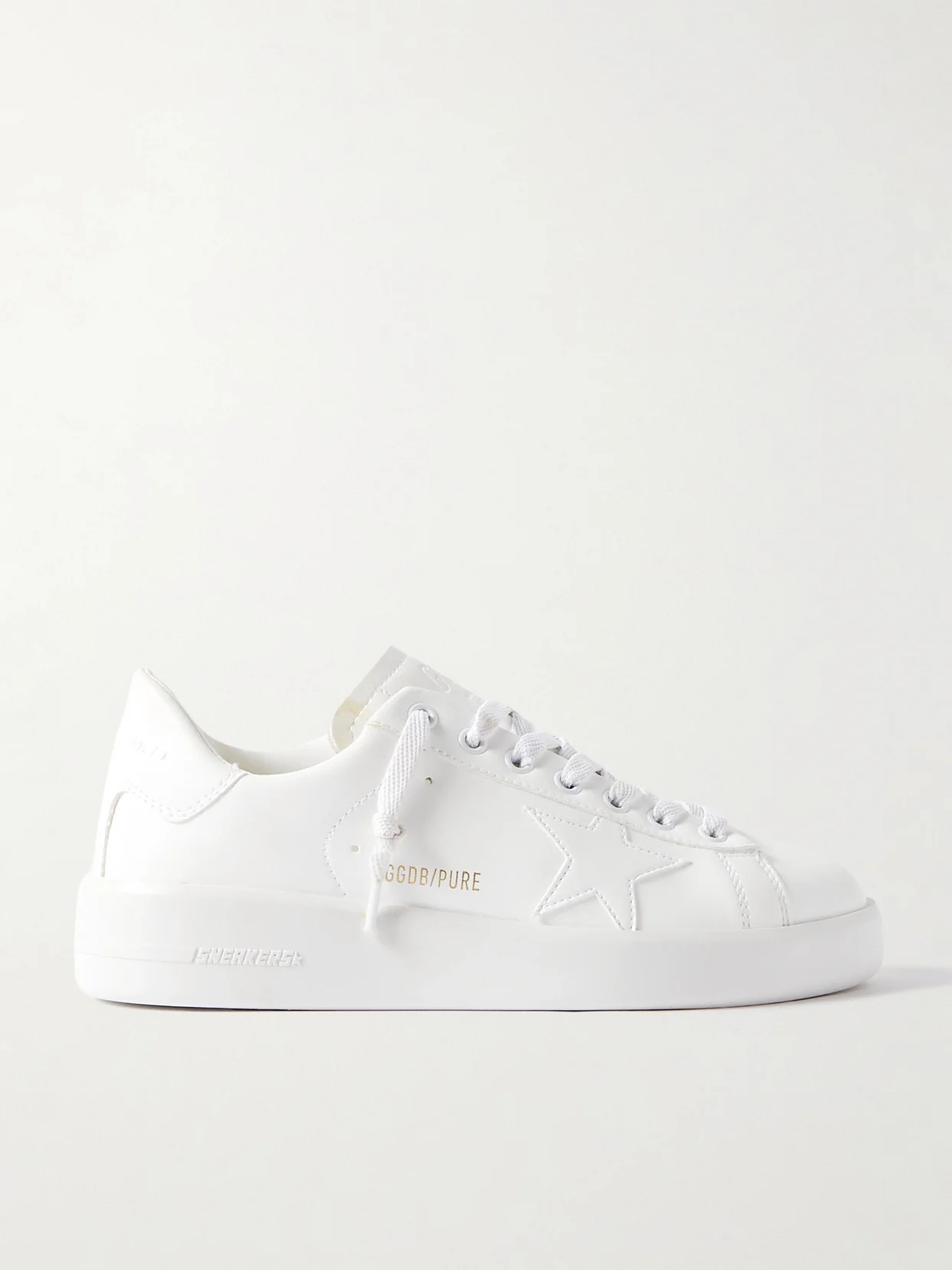 Characterized by chunky rubber soles and a minimalist profile, Golden Goose's 'Purestar' sneakers are perfect all-rounders. This pair has been made in Italy from faux leather, dressed with the label's unmistakable star emblem and logo-stamped heel tabs. The clean, box-fresh finish is a departure from the brand's signature distressing.