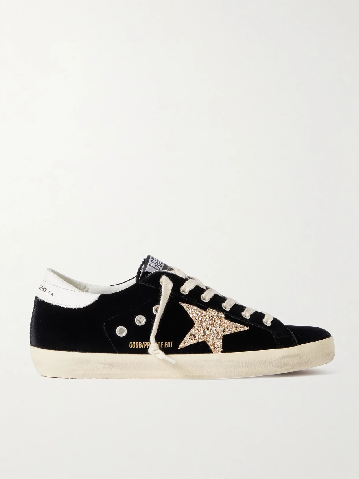 EXCLUSIVE AT NET-A-PORTER. Golden Goose's 'Super-Star' sneakers come in endless design combos - this velvet pair with glittered leather stars is particularly playful in its shimmering textures. They've been distressed by hand, inspired by skater styles.