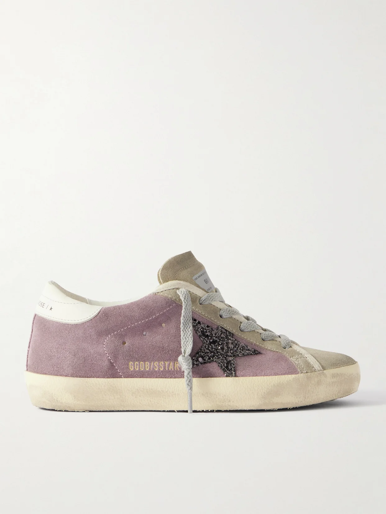Golden Goose's passion for the imperfect is what sets its designs apart. These leather-trimmed 'Super-Star' sneakers are made from suede, which is distressed for a uniquely worn-in look. The signature star emblem gets a glittery upgrade, supplying an extra dose of serotonin.