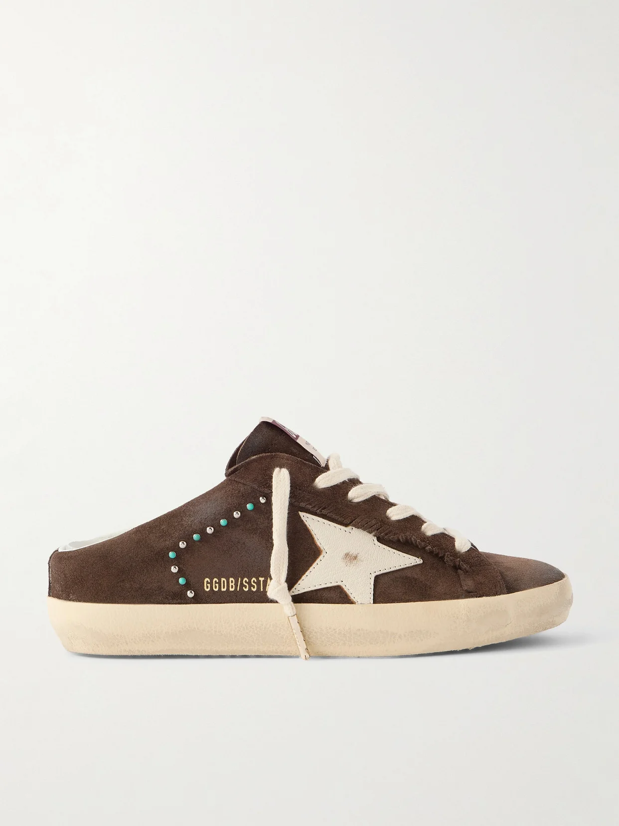 Super-star Sabot Distressed Leather-trimmed Studded Suede Slip-on Sneakers