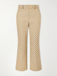 Gucci's bootcut pants are inspired by the 'La V.I.C.' and 'La V.I.P.' archetypes from Demna's inaugural collection, 'La Famiglia'. Made in Italy from canvas-jacquard, they feature the distinctive 'GG' monogram and 'Dionysus' detailing on the belt - a more-is-more approach that calls for styling with the matching coat.