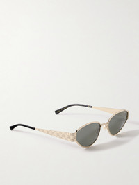 Gucci Eyewear's sunglasses are engraved with the brand's signature 'GG' emblems along the arms, making them instantly recognizable. They've been crafted in Japan from gold-tone metal and have chic cat-eye frames fitted with dark-green lenses.