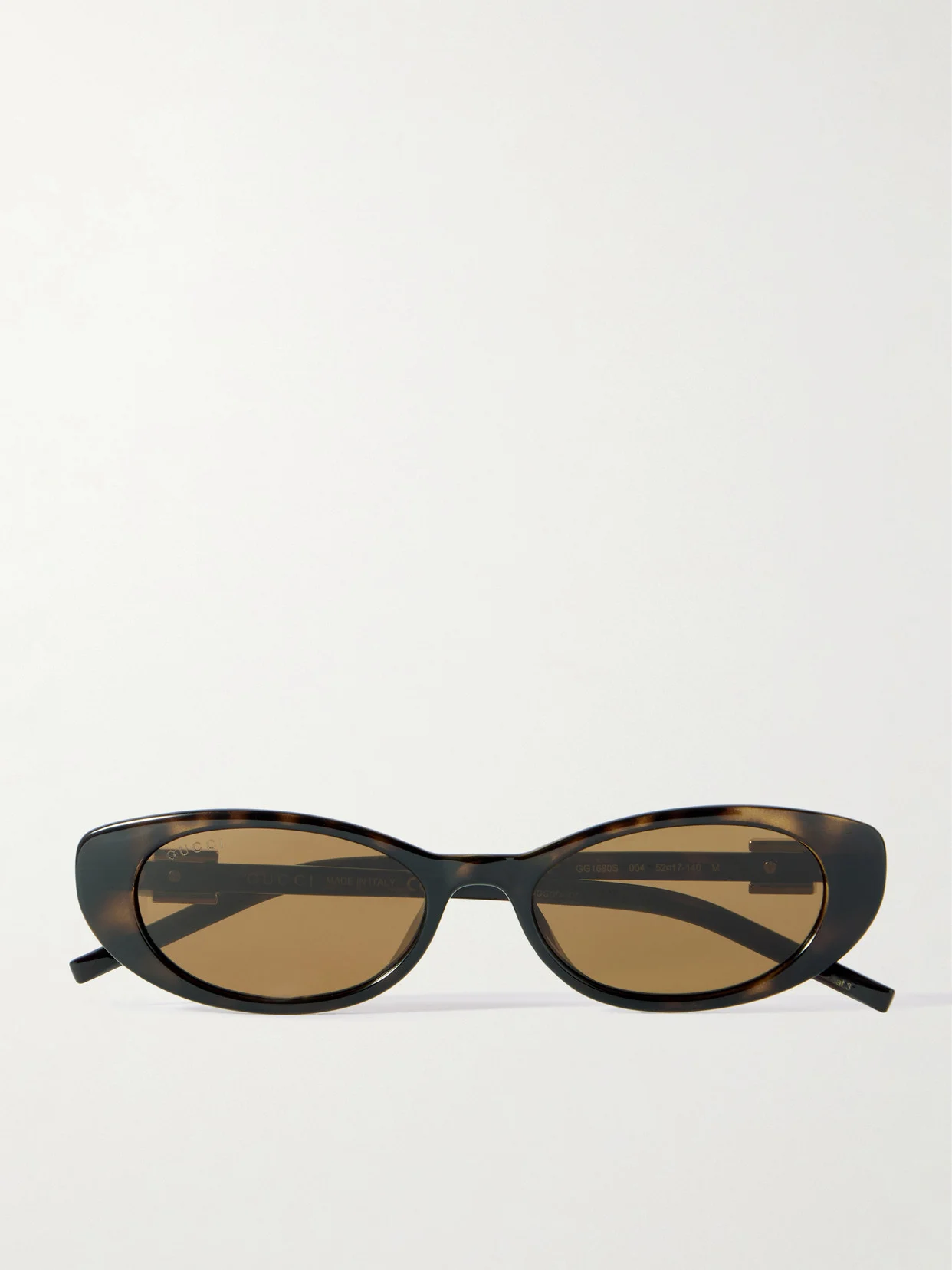 "The classic yet contemporary cat-eye style helps to highlight cheekbones and can enliven even the most understated look;" writes PORTER. Gucci Eyewear's sunglasses are made from glossy tortoiseshell acetate and adorned with a crystal-embellished 'G' at the temples.