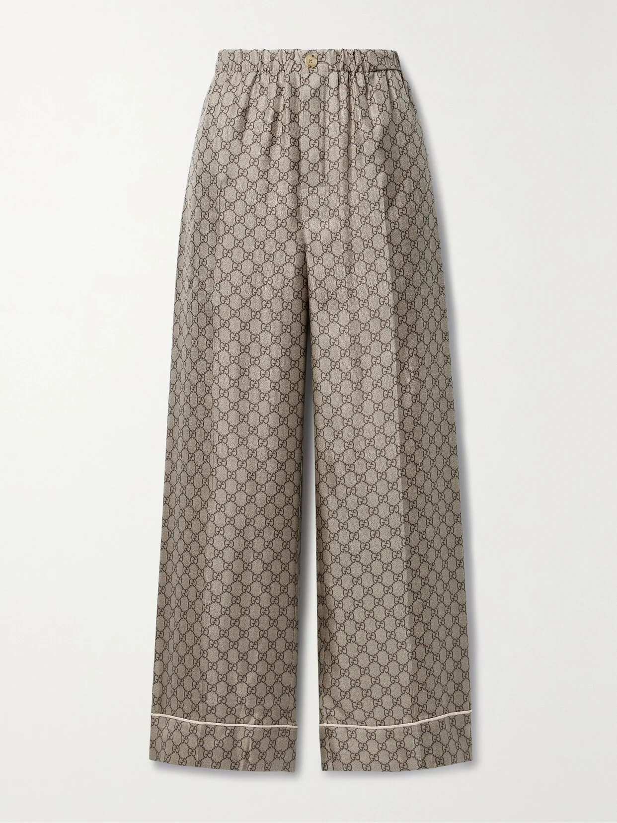 Gucci's pants combine the comfort of loungewear with the elegance of tailoring. Cut from silk-satin, they're jacquard-woven with an allover 'GG Supreme' motif and have cropped wide legs, which are trimmed with classic piping. Wear yours as a set with the matching shirt.