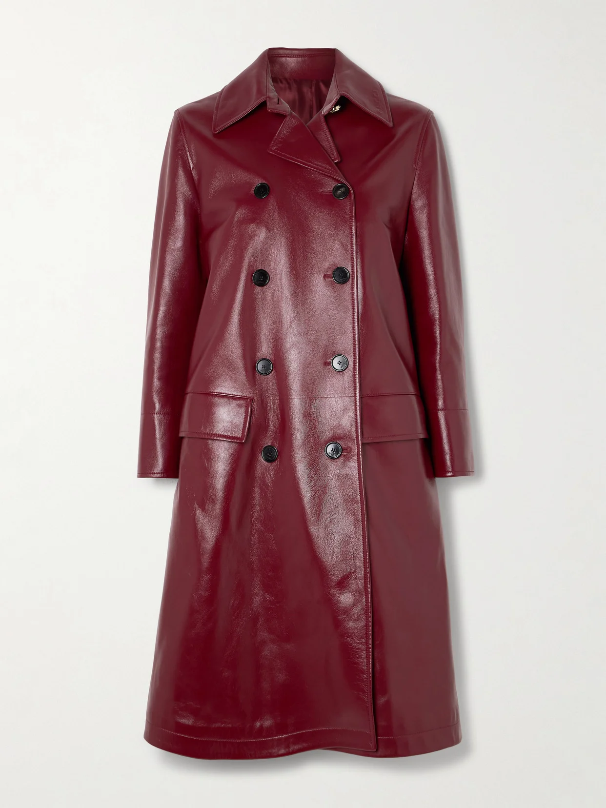 There's a distinctive ‘60s-inspired mood to Gucci's Spring '25 collection. Worn on the runway, this trench coat is made from glossy burgundy leather with a double-breasted front and satin lining. Wear yours closed to showcase the logo-embellished button and moniker at the collar.