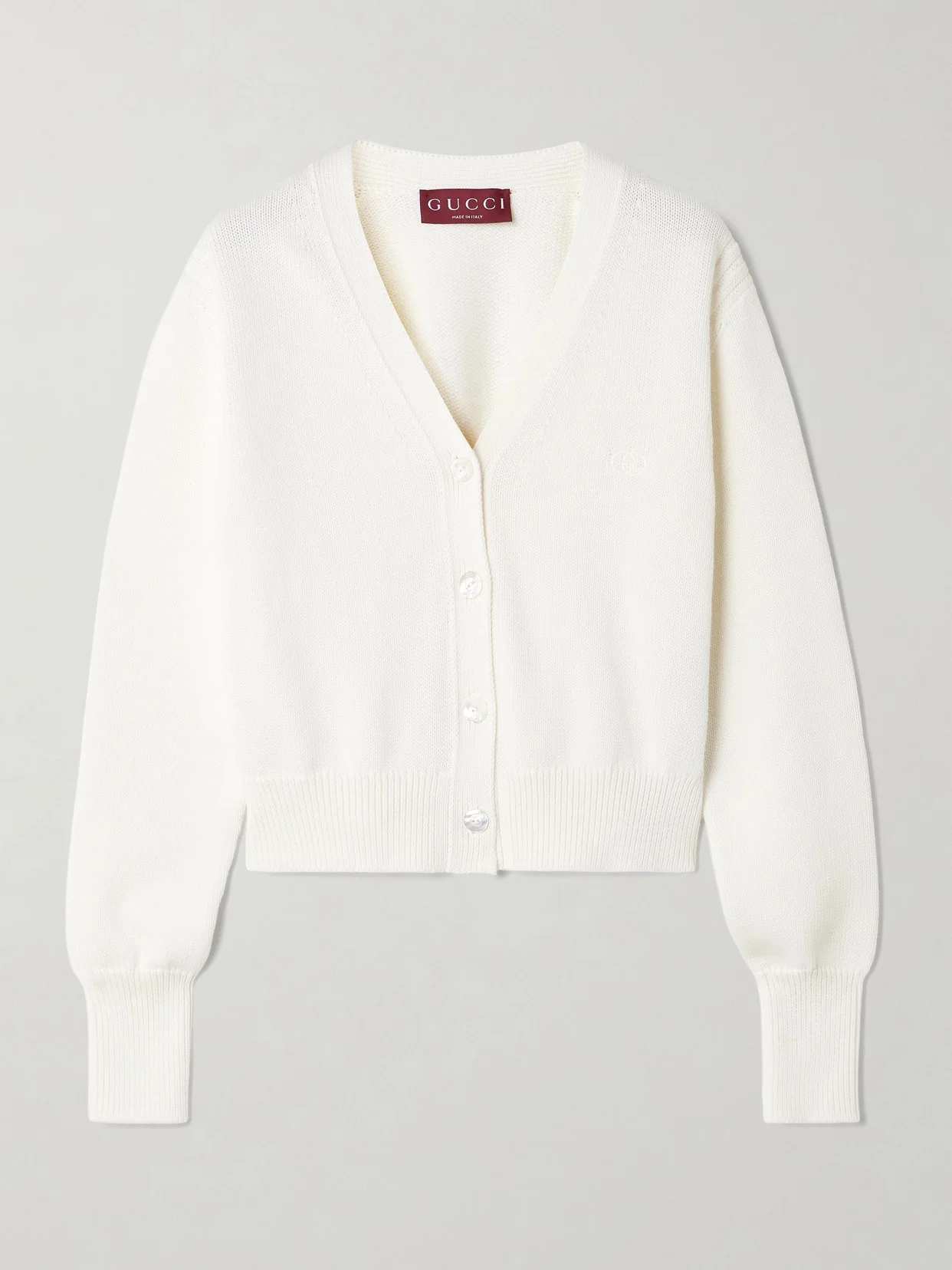 Gucci's cardigan will slot nicely into your existing wardrobe. It's knitted from lightweight cotton for a close fit and is embroidered with the iconic 'GG' monogram.