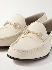 EDITORS'NOTES Gucci originally released its iconic 'Horsebit' loafers in 1953, and the style has been a classic ever since. Made in Italy from soft ivory leather, they have a simple design traced with moccasin-inspired stitching and cushioned insoles for comfort. Style yours with cropped jeans and a tee, or try them with tailoring for the office. SIZE & FIT - Fits true to size, take your normal size - Italian sizing DETAILS & CARE - Slight heel - Ivory leather (Calf) - Slip on