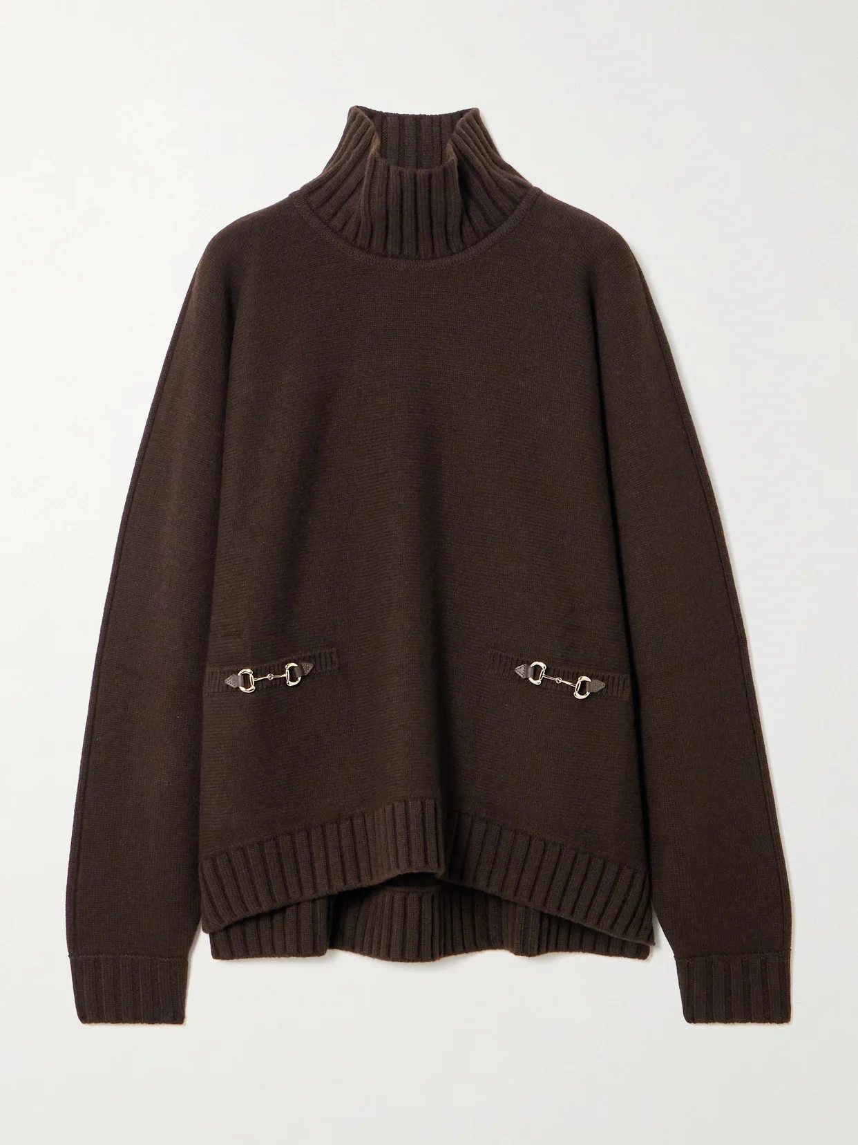 Horsebit-detailed Wool And Cashmere-blend Turtleneck Sweater
