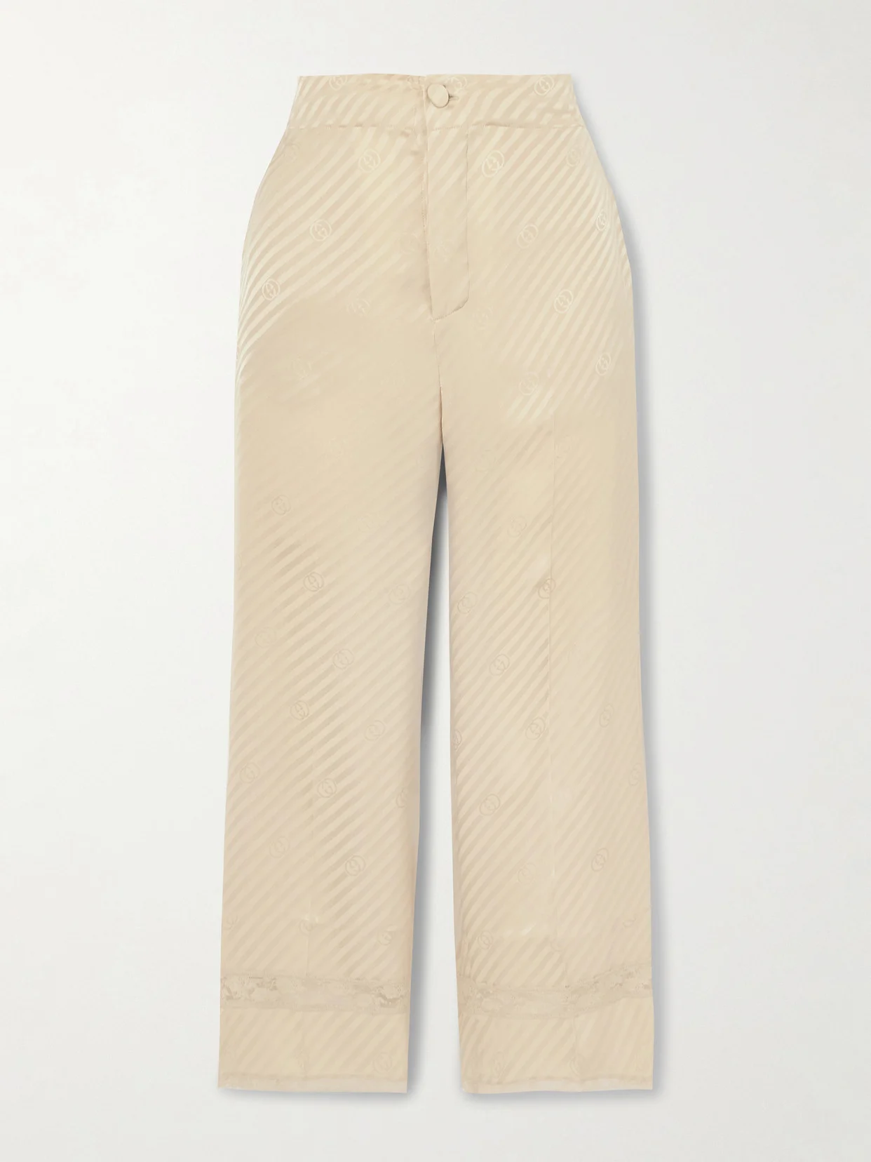 Lace-trimmed Striped Silk-jacquard Straight-leg Pants