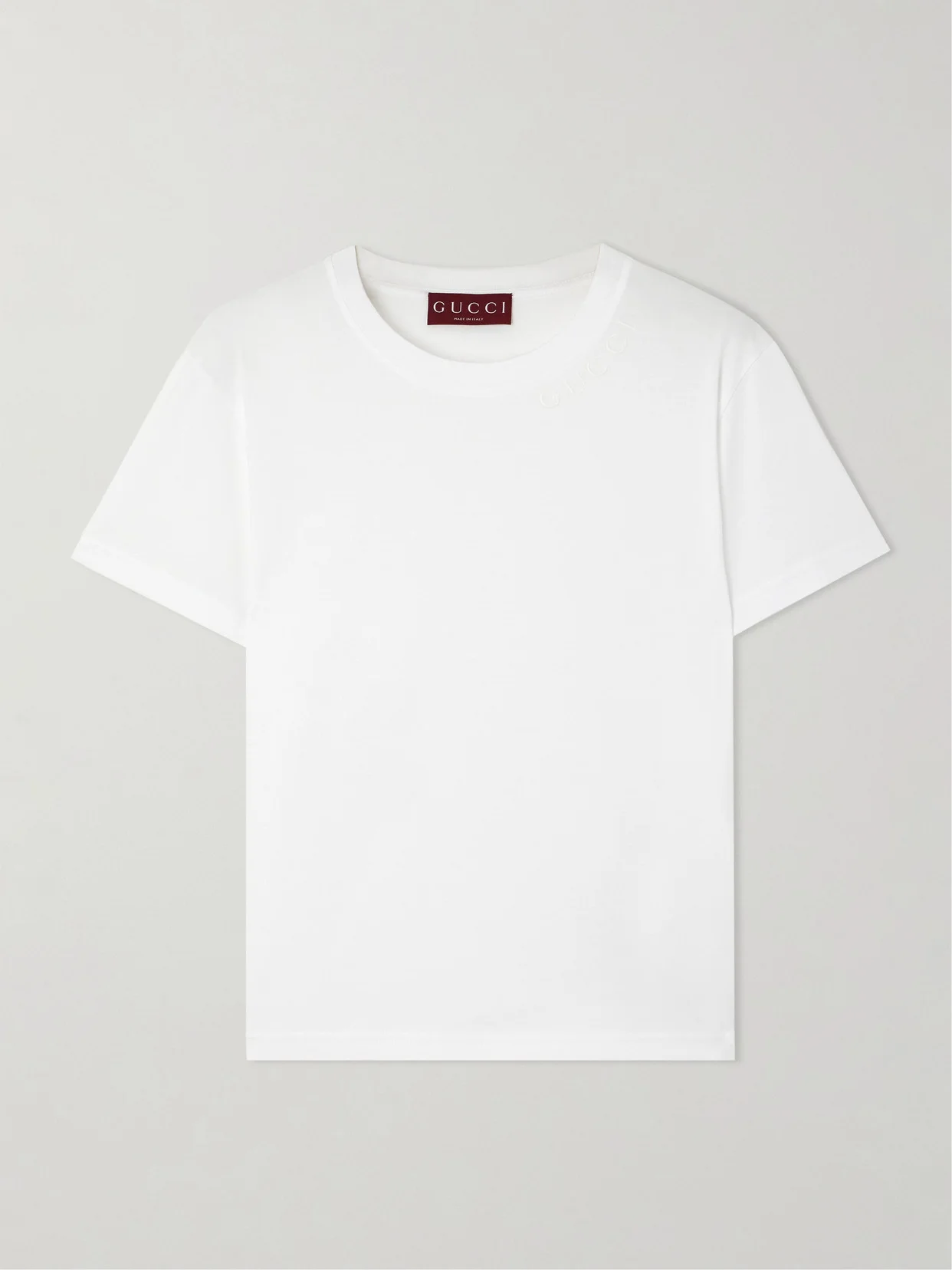 While Gucci knows how to make a statement, that doesn't mean its foundational designs take a back seat. Created with quality at the forefront, this T-shirt is made from lightweight cotton-jersey for a slim fit and has subtle logo embroidery along the classic crewneck.