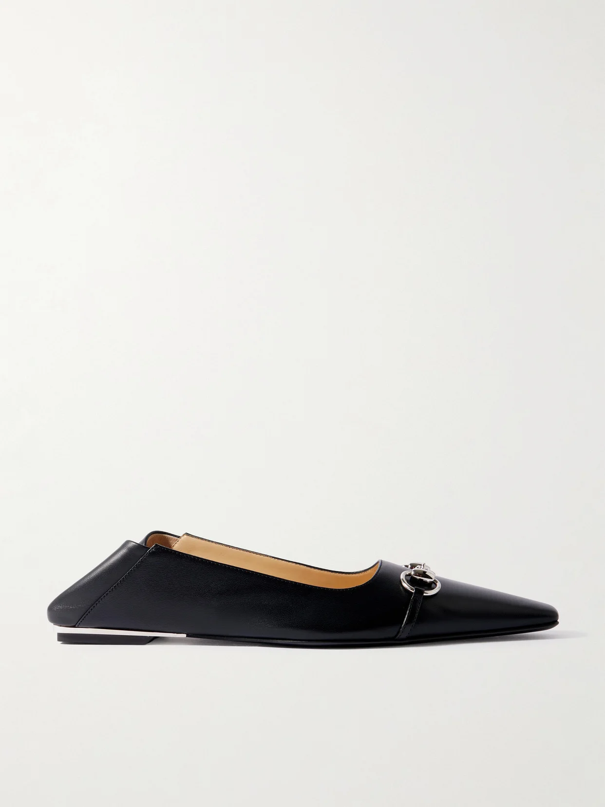 Vittoria Collapsible-heel Horsebit-embellished Leather Ballet Flats