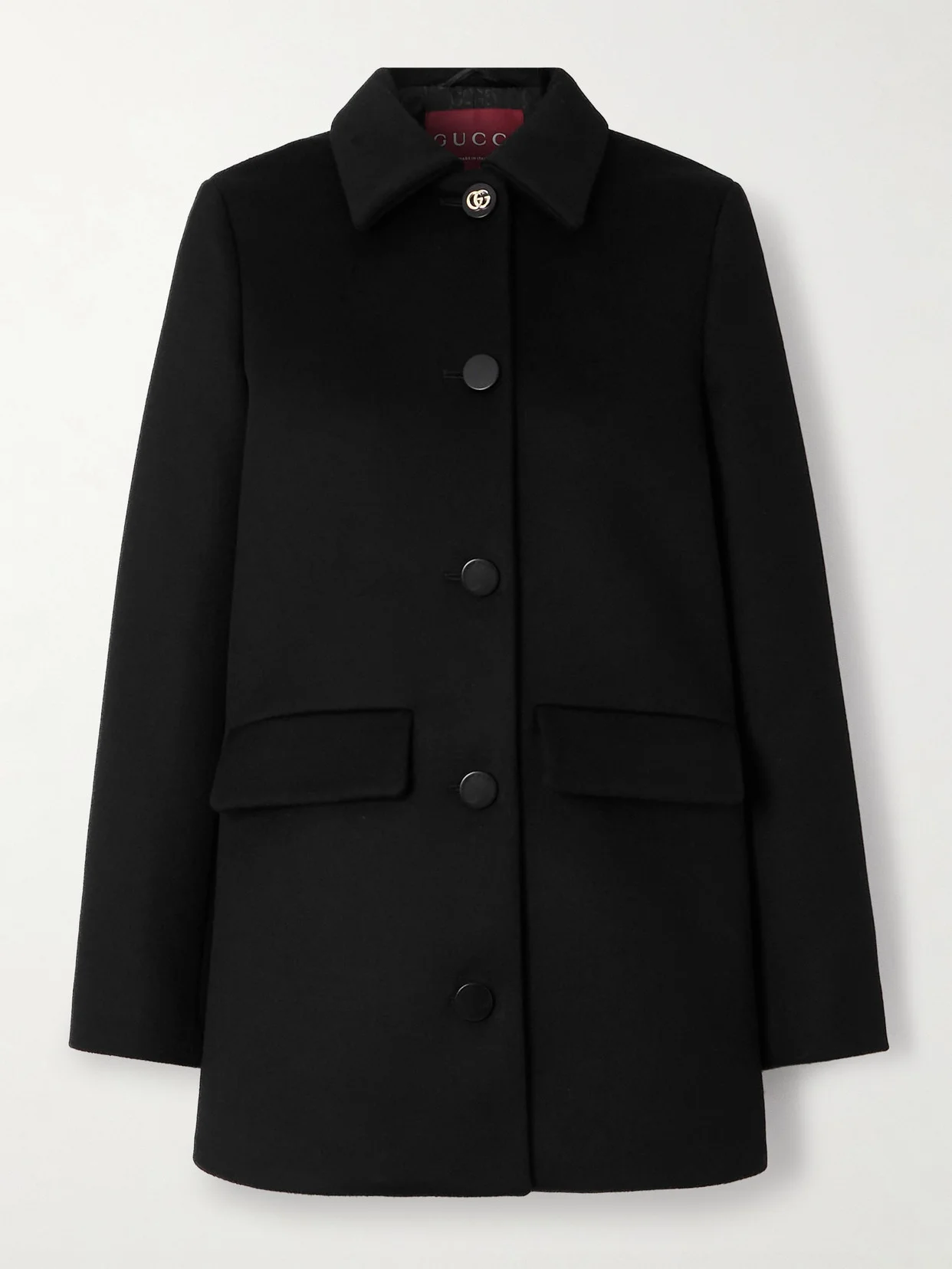 There is an undeniable elegance to Gucci's coat. Modeled on classic car styles, it's tailored in Italy from pure wool, so it's naturally soft and warm. We love the logo-embellished top button.
