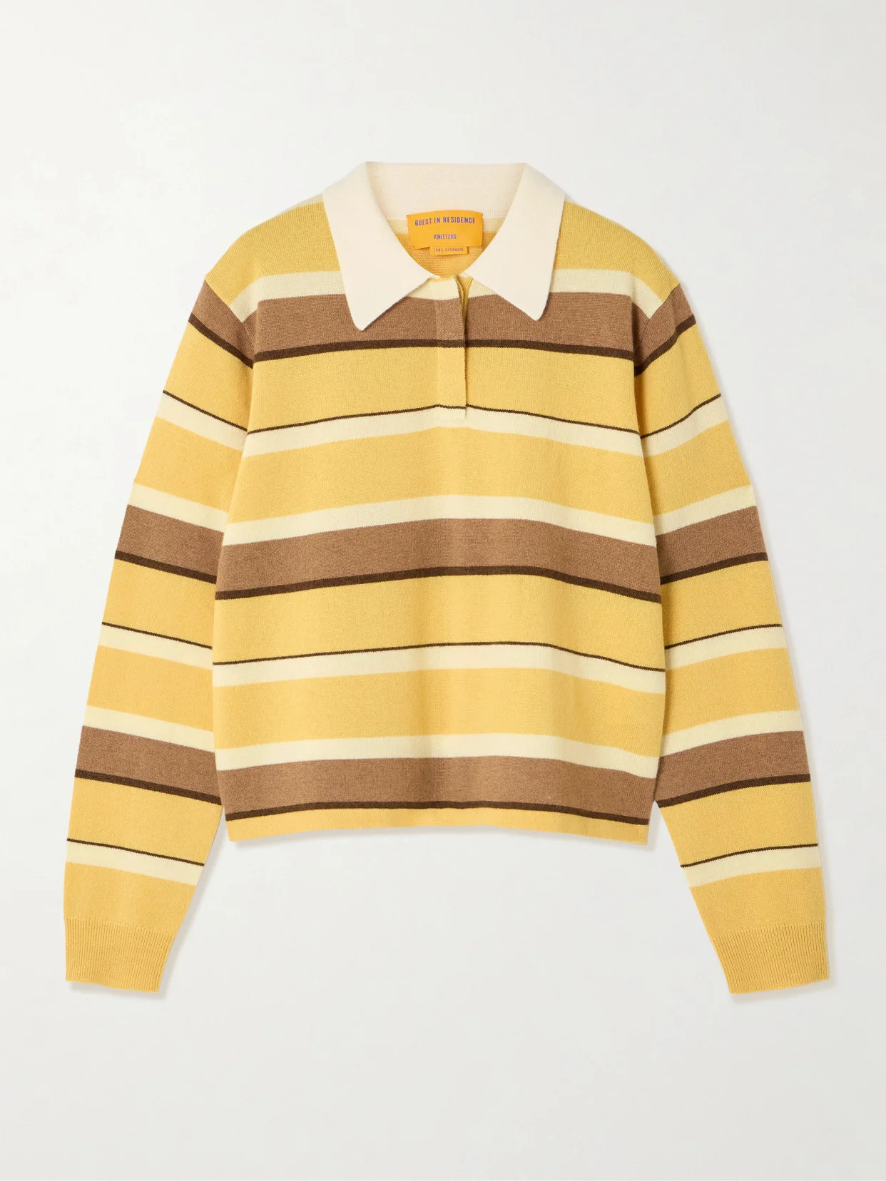 This version of Guest in Residence's signature rugby-inspired polo sweater is reimagined in a cropped shape. It's made from plush cashmere and patterned with tonal-brown and yellow stripes.
