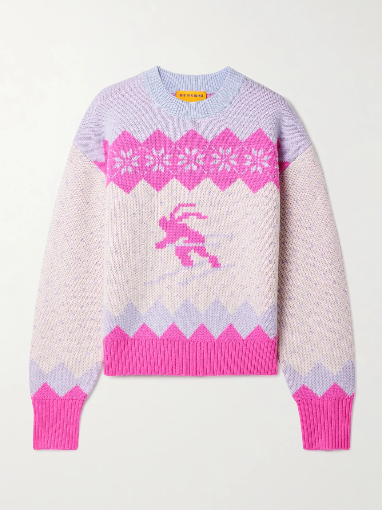 Guest in Residence's colorful 'Downhill' sweater calls to mind festive holiday styles. Made using a tight-tension knitting processes, it's spun from a wool and cashmere-blend and has a relaxed shape with dropped shoulder seams and ribbed trims.
