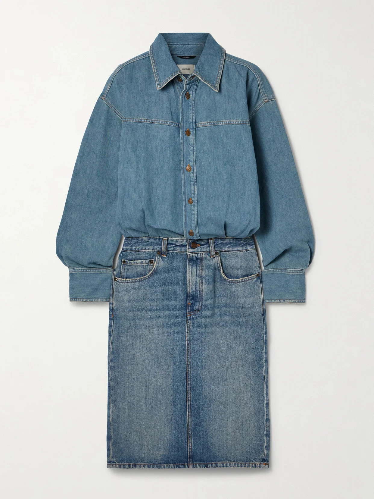 Denim designed for today and built to last forever is Haikure's specialty. This 'Joelle' shirt dress has been made in Italy from the label's signature organic fabric, which is milled using water-saving processes. The different washes give the illusion of two separate styles.