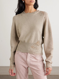 Unraveled cutouts give Haikure's 'Marcy' sweater a worn-in feel. It's made from cotton and wool-blend with dropped blouson sleeves and a ribbed waistband. Wear yours with a pair of the brand's 'Korea' jeans.
