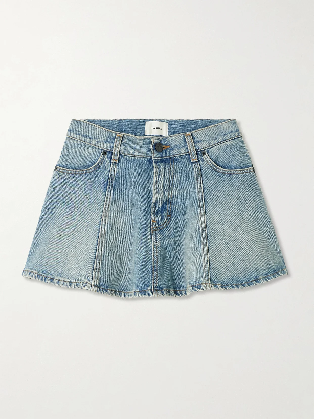 Haikure's 'Margaux' mini skirt embraces the Y2K trend at its finest. Made from organic denim, it has panels that define the fit-to-flare shape. Tuck in a tank or cardigan for effortless styling.