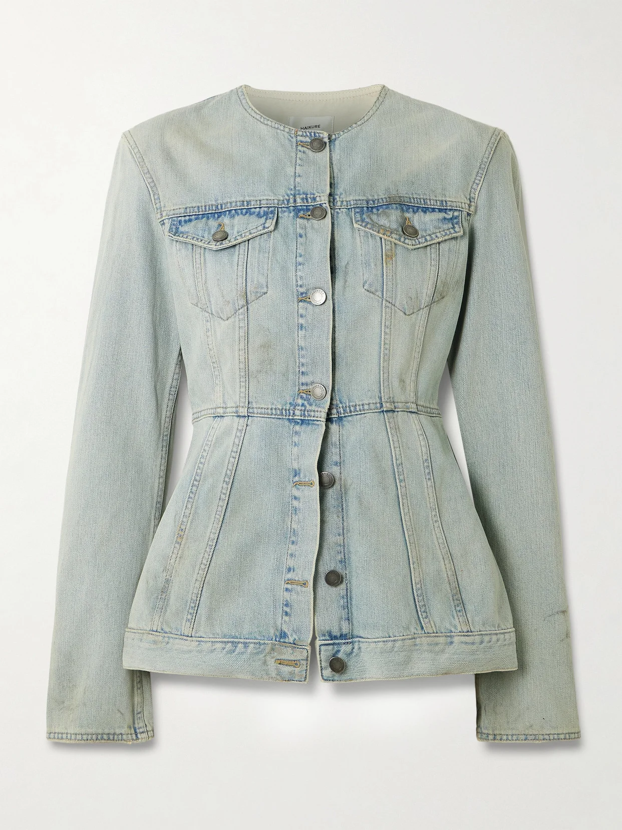 Italian label Haikure sees denim as its muse. Made from its signature fabric, this 'Temple' jacket is cut in a structured silhouette, with a nipped waist and peplum hem. It's lightly distressed with darker patches for a love-worn look.
