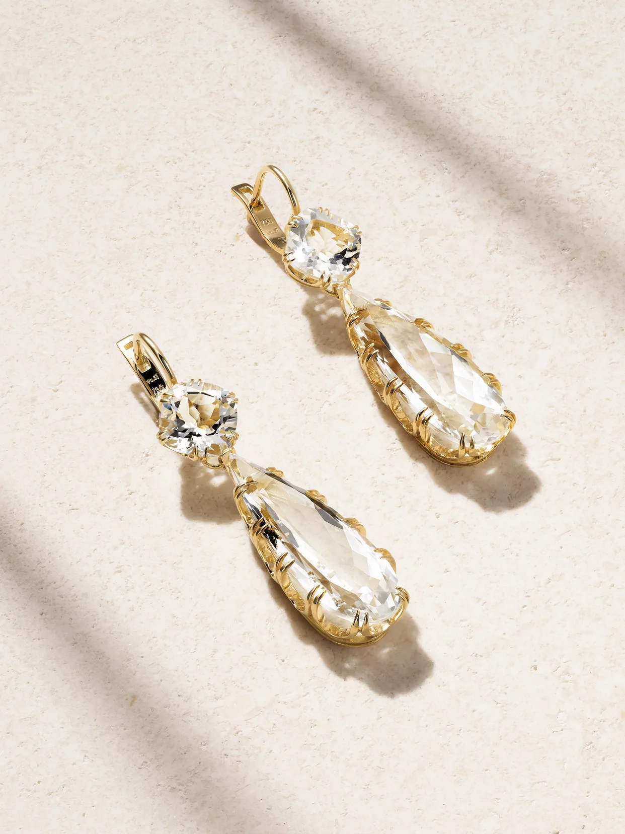 Ileana Makri's regal earrings take their name from the crown-like settings that support the stones. Handmade from 18-karat gold, they're topped with faceted white topaz and anchored by larger teardrop-shaped versions.