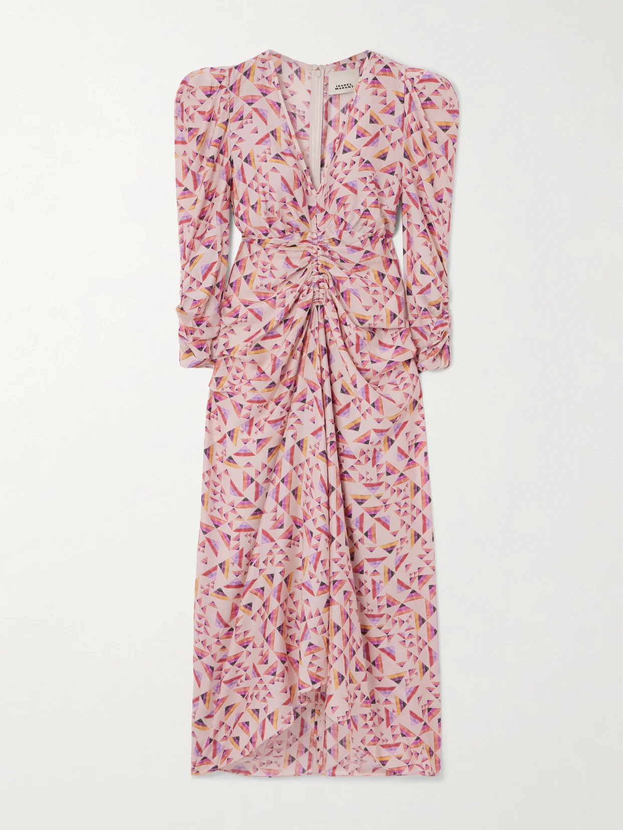 The puffed sleeves and gathered waist of this 'Albini' dress could only belong to Isabel Marant. It's made from breathable voile printed with an optical motif and has an asymmetric hem. Wear yours with knee boots.