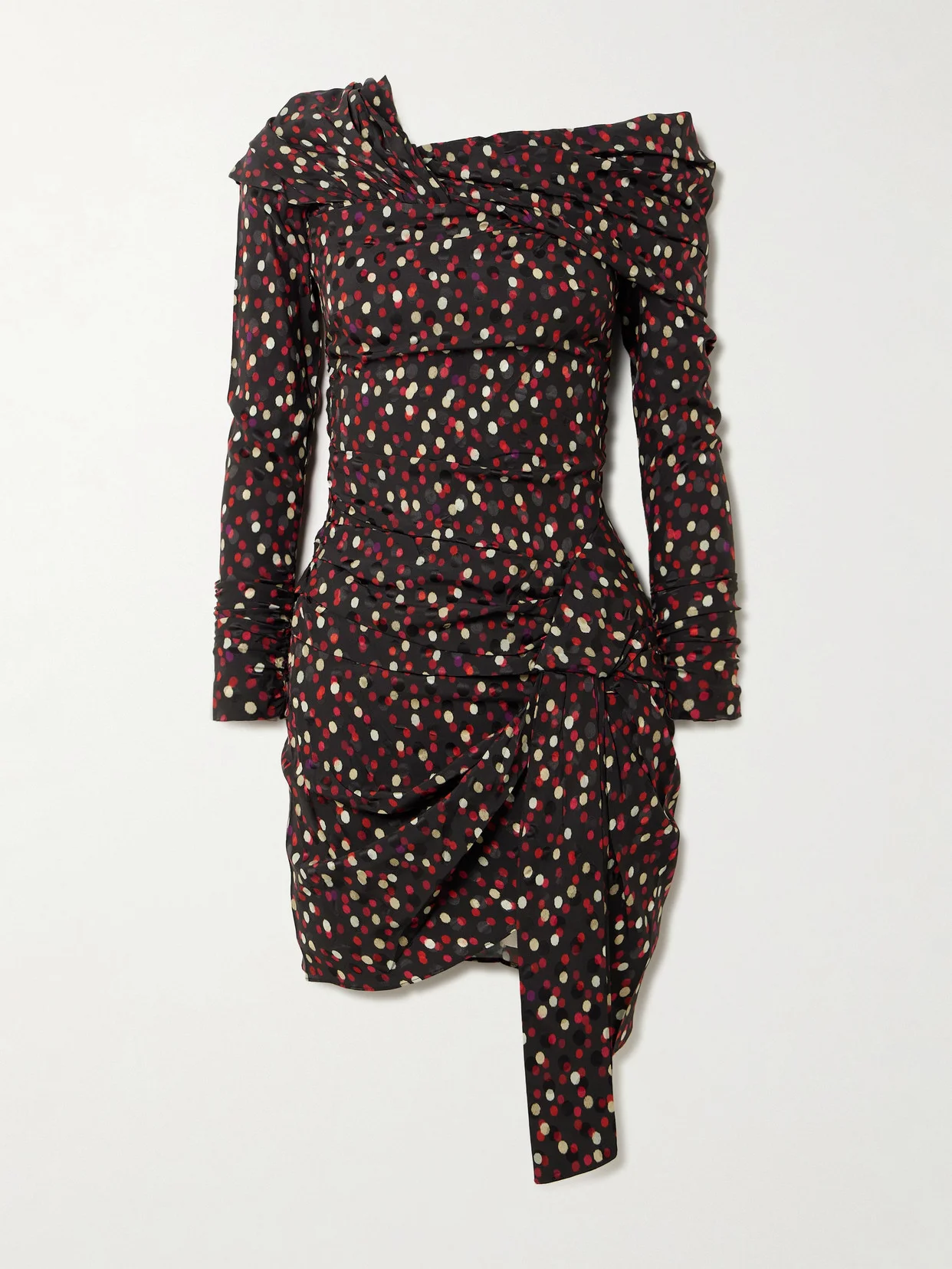 Asymmetric Draped Polka-dot Stretch-silk Dress