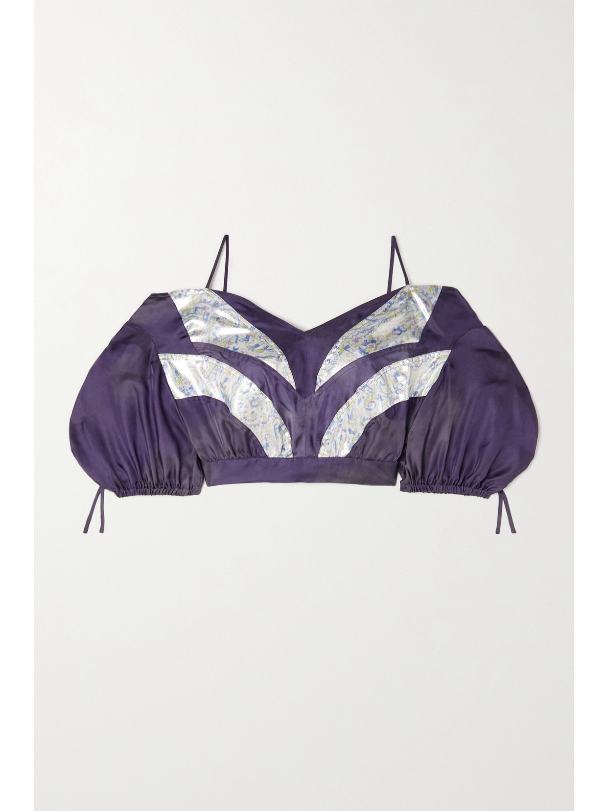 Berit Cold-shoulder Cropped Paneled Satin Top