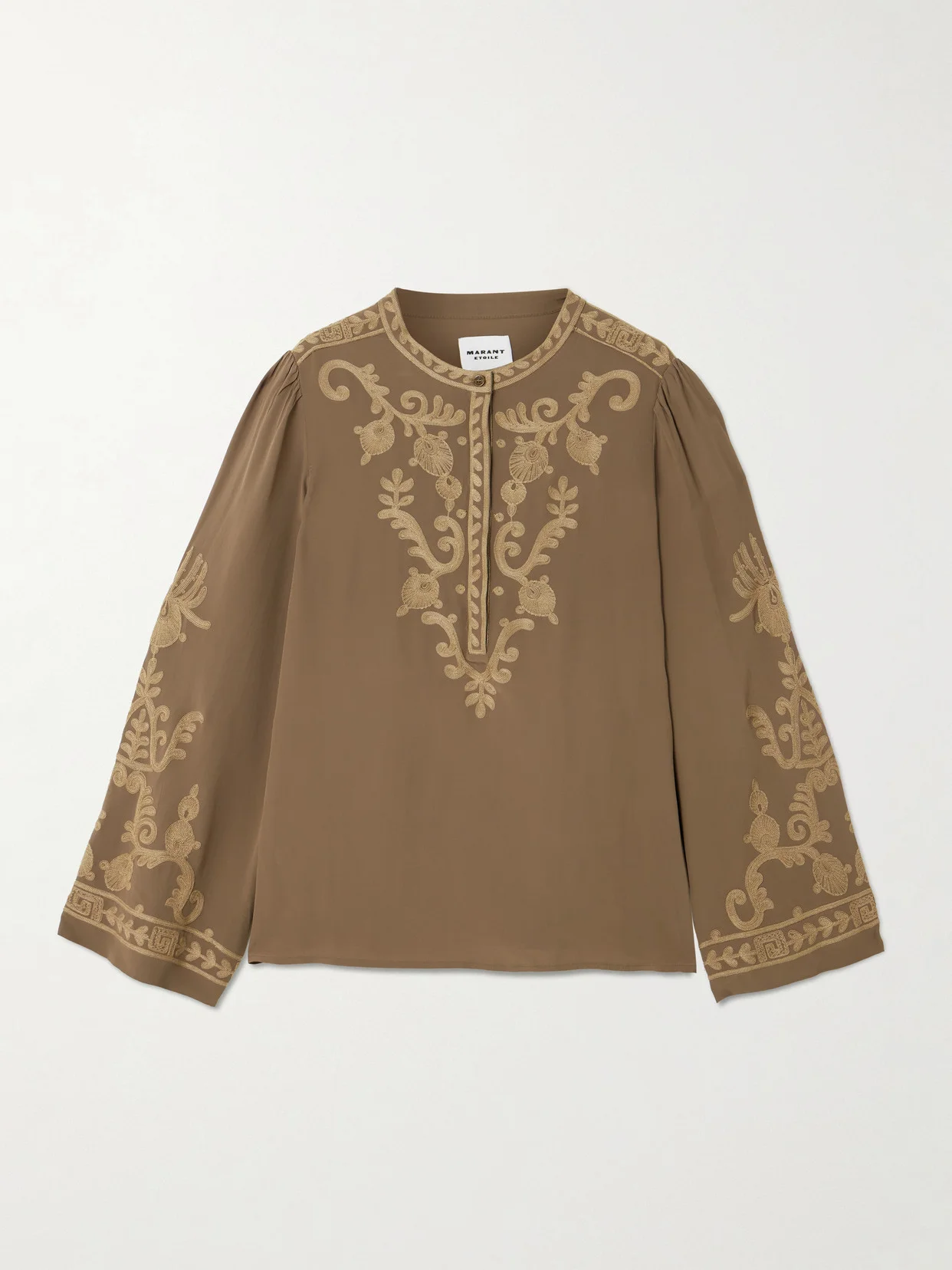 The beautiful embroidery on Marant Etoile's 'Falonne' blouse nods to the label's bohemian sensibilities. Made from crepe, it has bell sleeves and is designed for a slightly loose fit. The buttons can be fastened or left effortlessly undone
